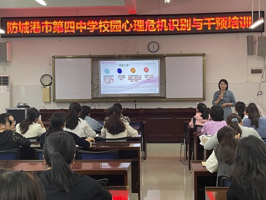 为扎实推进“精神卫生服务年”工作部署,全面落地儿童青少年“五健”促进行动计划,深化医校协作机制,切实提升校园心理危机识别与应急处置水平,3月20日,市妇幼保健院临床心理门诊负责人潘月金医师受邀走进防城港市第四中学,为全校班主任开展校园心理危机识别与干预培训,以专业医疗力量为青少年身心健康保驾护航。