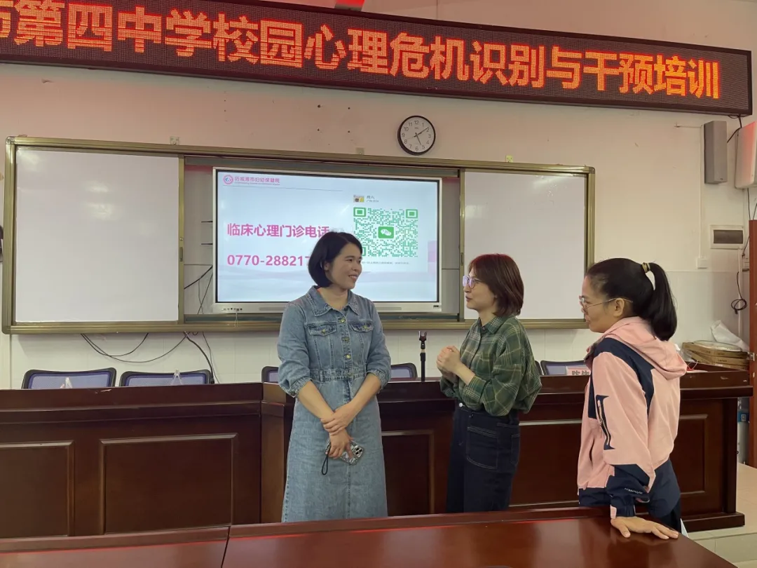 为扎实推进“精神卫生服务年”工作部署,全面落地儿童青少年“五健”促进行动计划,深化医校协作机制,切实提升校园心理危机识别与应急处置水平,3月20日,市妇幼保健院临床心理门诊负责人潘月金医师受邀走进防城港市第四中学,为全校班主任开展校园心理危机识别与干预培训,以专业医疗力量为青少年身心健康保驾护航。