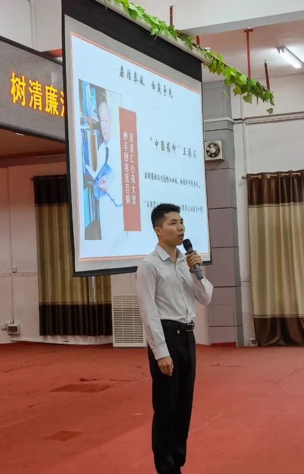 2023年8月19日是第六个中国医师节,也是党的二十大召开后的首个中国医师节,今年的节日主题是“勇担健康使命,铸就时代新功”。为庆祝今年医师节,8月22日上午,市卫生健康委于市第一人民医院组织开展了“守医者初心,树清廉新风”演讲比赛活动。全市各医疗机构共17组选手参加此次比赛,我院覃毅黎同志以优异的成绩在比赛中脱颖而出,荣获一等奖。覃毅黎同志精神饱满,声情并茂,结合课件展示,以《廉洁奉献,由我争先》为题,列举从古至今的仁医典范、对比花中四君子秋菊和冬梅的良好品质,阐释医德医风、廉洁自律是一面镜子。它时刻提醒我们,要抵住诱惑,撑住信念,守住清贫,耐住寂寞。他精彩的表现赢得了现场评委和观众们的一致好评、阵阵掌声。此次比赛的顺利举办,大力弘扬了医务工作者的崇高精神,进一步团结凝聚广大医务工作者在新时代新征程上,推进全面深化清廉医院建设,巩固清廉医院建设成果,推动清廉理念深入单位、深入人心。作为新时代的医务工作者,我们要常怀自律之心,坚持以慎促廉。只有这样,才能使廉洁行医不沦为口号;也只有这样,才能净化我们的行业风气,构建和谐的医患关系,营造我市卫生健康系统风清气正的良好政治生态,推动我市卫生健康事业高质量发展。