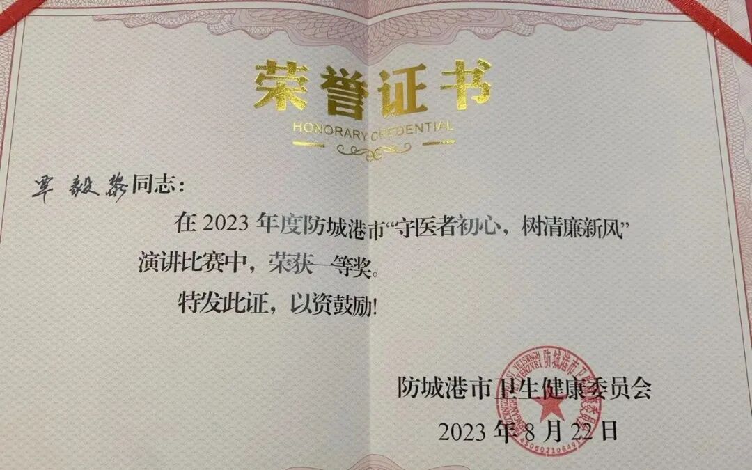【喜报】我院覃毅黎同志在全市“守医者初心,树清廉新风”演讲比赛活动中荣获一等奖