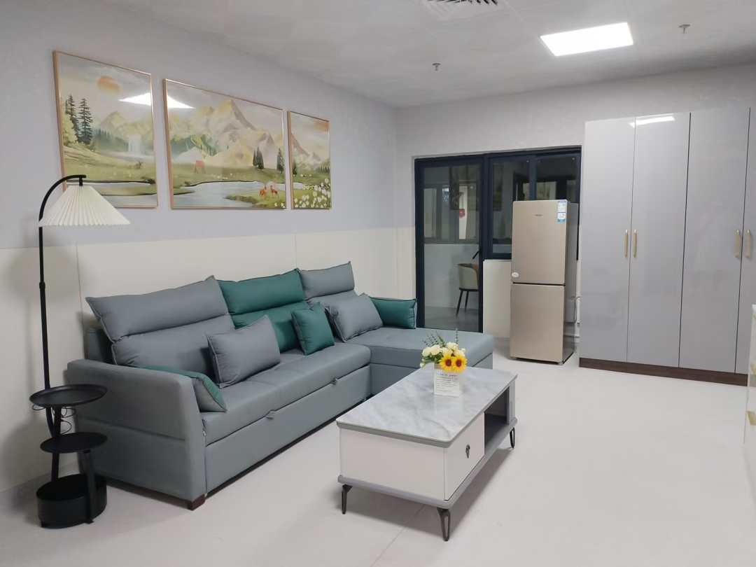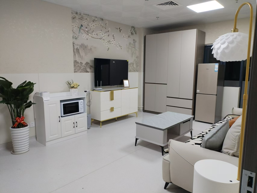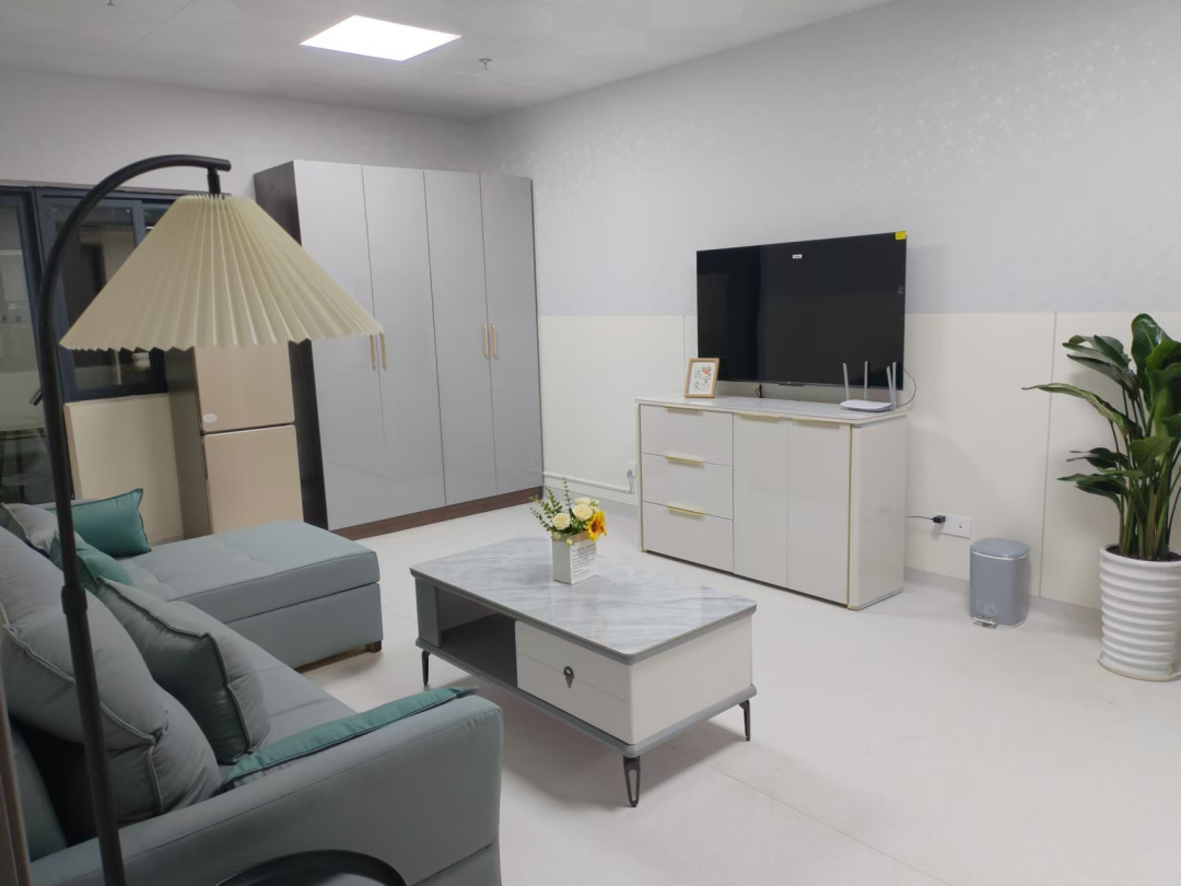 房间配置有全自动产床、母胎监护仪、进口无影灯、新生儿辐射台、空气消毒机、中心供氧、分娩球及医疗急救设备和抢救药品等先进齐全的医疗设备,家具配有液晶电视、冰箱、洗衣机、饮水机、微波炉、电磁炉、温奶器、坐卧两用皮沙发、餐桌、茶几、定制衣柜、婴儿床等,中央空调、宽带上网等各类生活设施一应俱全,24小时热水供应,家人可在室内居住,随时陪伴左右,使您在住院期间能享受到家的舒适温馨。