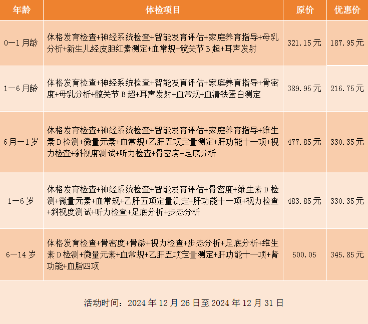 当天,防城港市妇幼保健院儿童体检中心也完成了全新升级。此次升级,儿童体检中心空间进行了重新规划和优化,扩大了体检区域,整体环境更加宽敞明亮。同时整体环境也进行了美化设计,色彩搭配更加温馨、和谐,有助于缓解儿童的紧张情绪。候诊大厅设有儿童游乐区,配备了木马、布偶等玩具,让孩子们在等待体检的过程中能够愉快玩耍,减轻紧张情绪。在12月26日至2024年12月31日体检还有优惠体检套餐,精美礼品相赠哦!