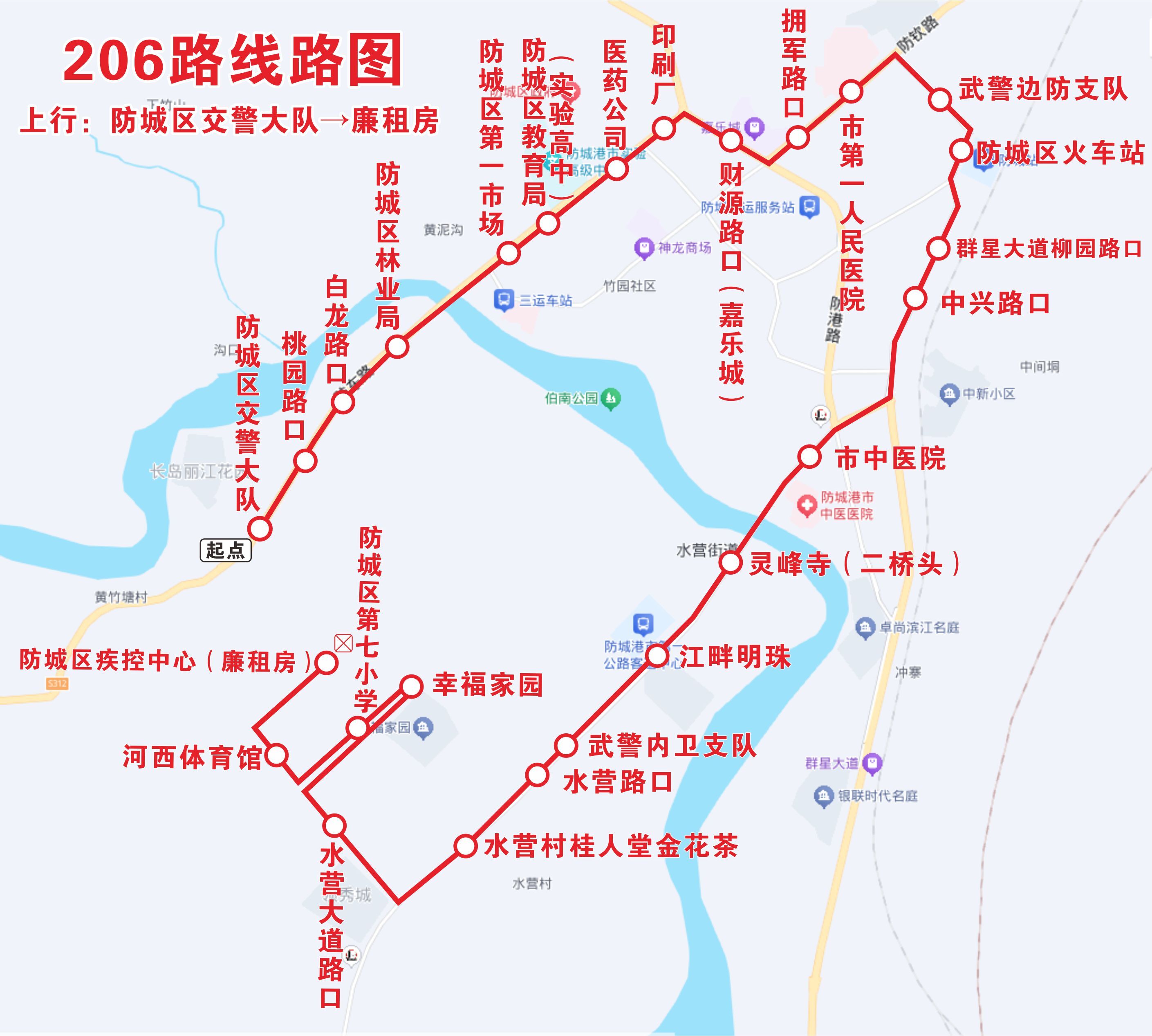 206路 防城区交警大队—防城区疾控中心:08:30—16:50