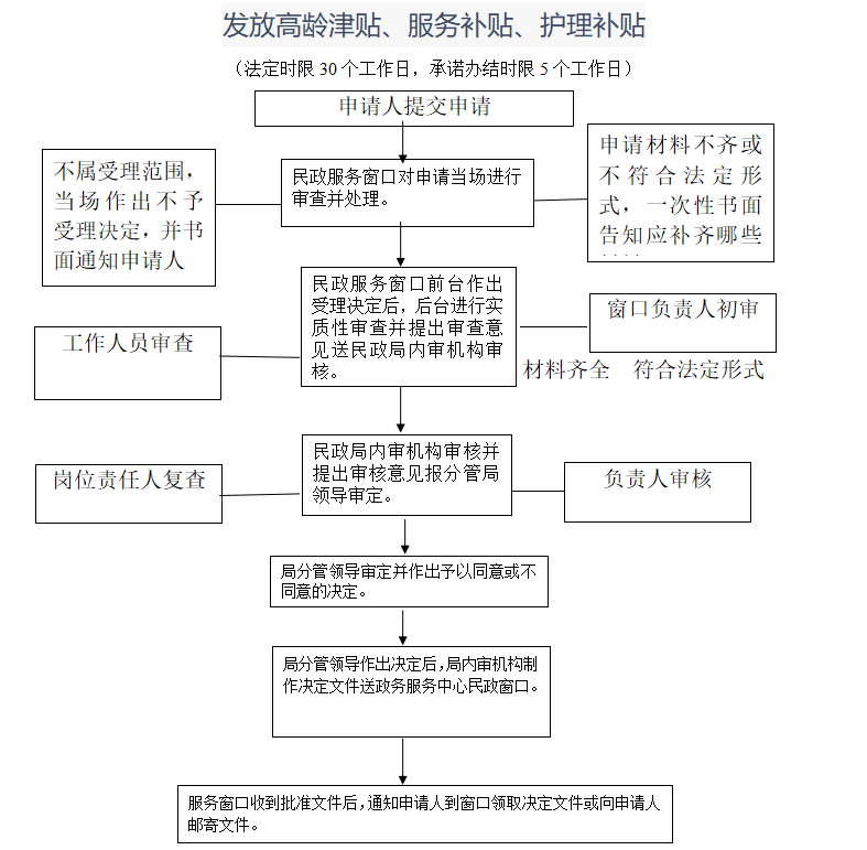 线下严格按照个人申请、村委会(社区)调查核实、乡(镇)、街道办事处审核、县(市、区)民政局审批的程序,实行三级审批,接受群众监督,做到公开、公平、公正。按程序审批通过当月或次月起计发补贴。逾期申请的,不予补发。