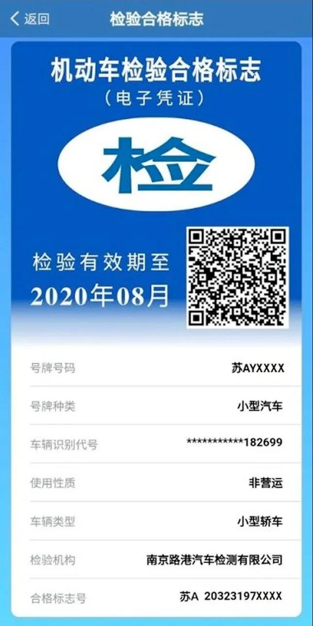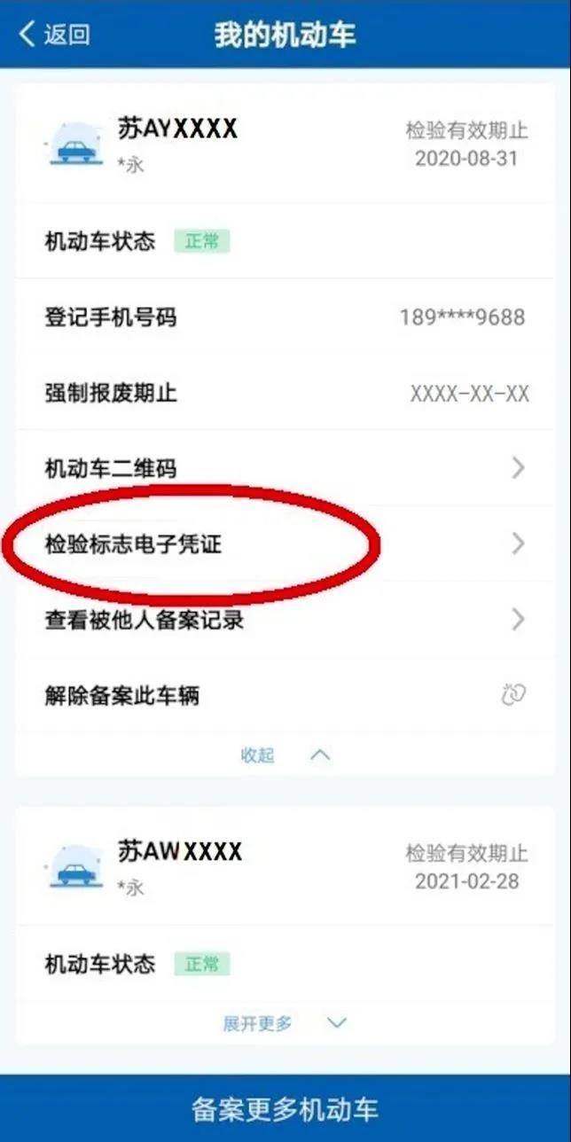 在线出示:直接登录“交管12123”手机APP,实时在线查询、出示本人名下或本人已备案机动车的检验标志电子凭证。