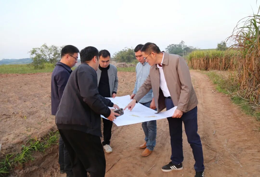1月13日,集团党委书记、董事长黄耘带队到上思县糖业发展局、在妙镇政府协调推进旱改水项目建设工作,并到项目现场实地督促指导,加快项目建设进度。