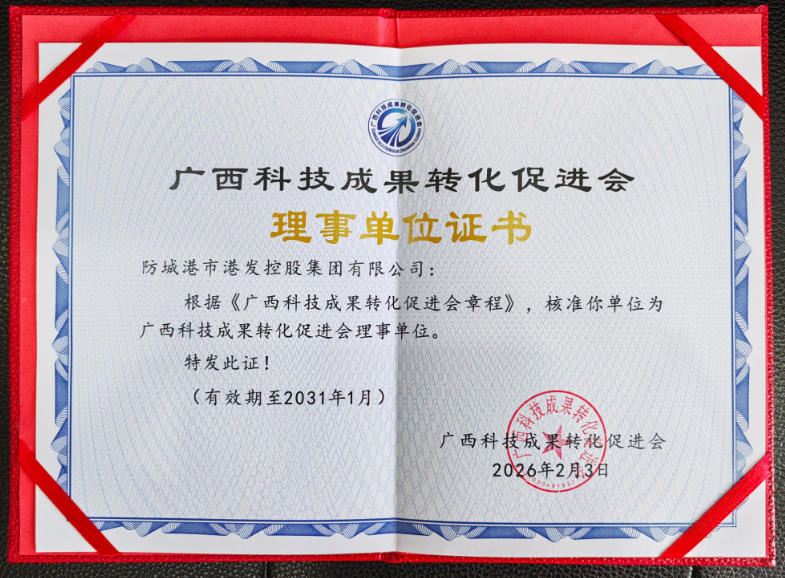 近日,市港发集团凭借近年来科技创新取得的优异成效,正式加入广西科技成果转化促进会并当选为理事单位 ,这标志着集团科技创新发展迈上了重要里程碑。未来将携手广西科技成果转化促进会推动集团科技创新发展转型,助力实现高质量发展目标。