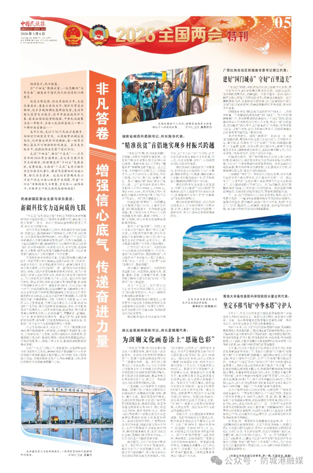 下一步,我们将始终牢记习近平总书记的嘱托,深入贯彻落实党的二十届四中全会精神和今年的全国两会精神,统筹兴边富民、稳边固边、向海开放三大任务,推动“十五五”开好局、起好步,以边疆稳、生态美、百姓富的生动实践,奋力谱写中国式现代化防城港篇章。