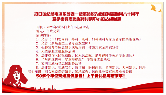 活动通知 | 港口区纪念毛泽东等老一辈革命家为雷锋同志题词六十周年暨学雷锋志愿服务月集中示范活动通知