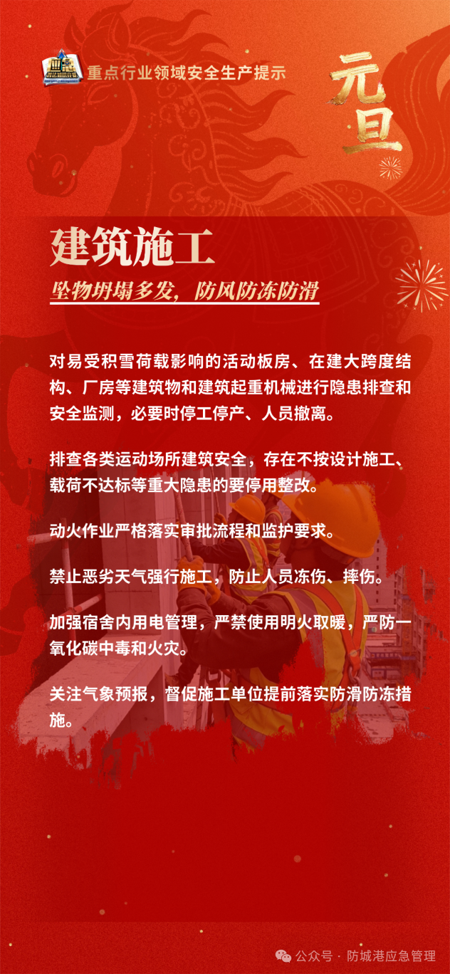 2026年元旦春节假期重点领域安全生产提示