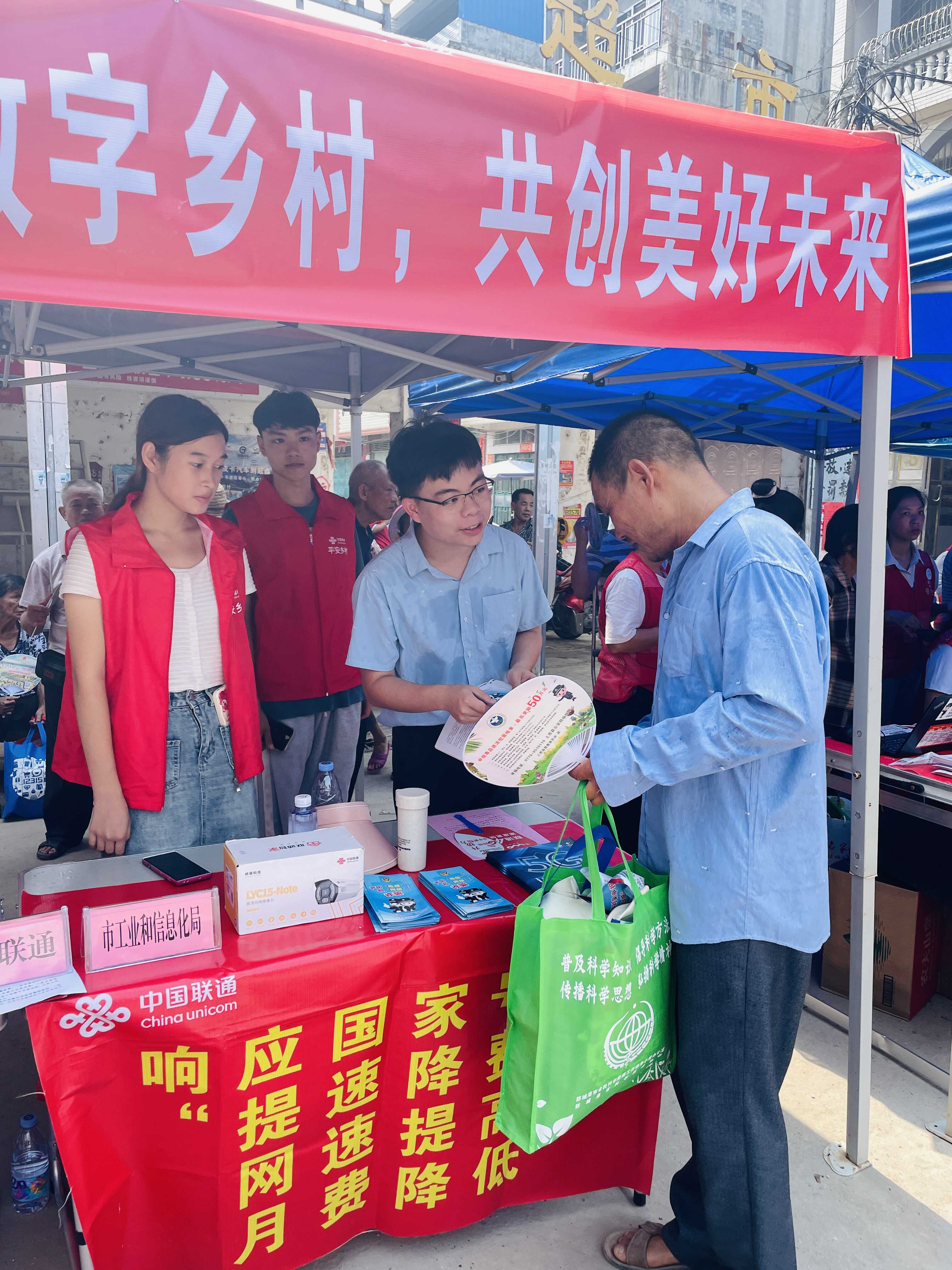 为深入学习贯彻党的二十大精神,我市开展深化“强国复兴有我”群众性主题教育活动-2023 年防城港市文化科技卫生“三下乡”暨“我们的中国梦”文化进万家活动。根据市委宣传部组织安排,2023年7月28日,市工业和信息化局组织各电信运营商到上思县在妙镇开展科技文化卫生“三下乡”宣传活动。