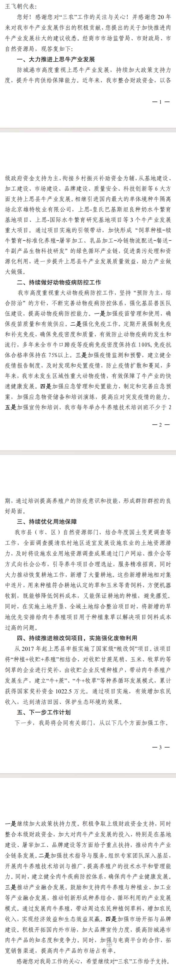 对防城港市七届七次会议第12号建议的答复