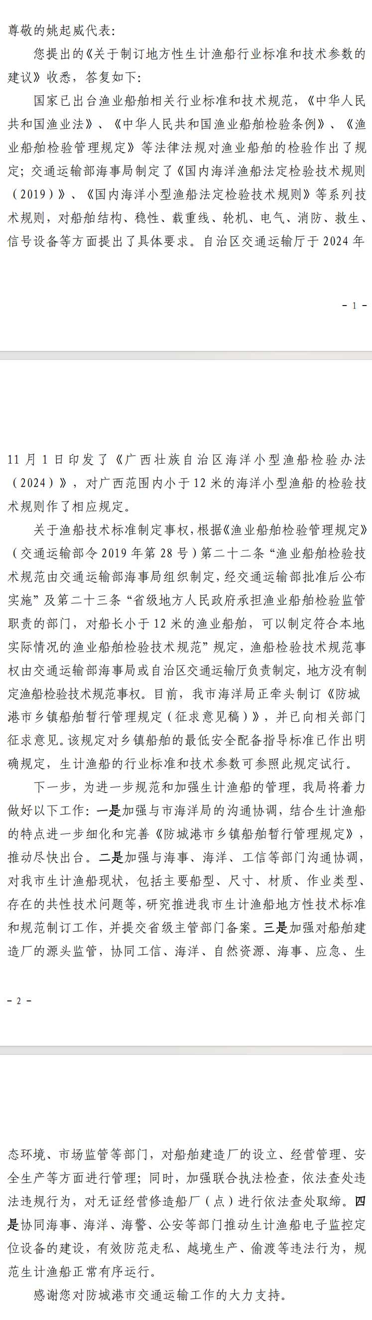 对防城港市七届七次会议第29号建议的答复