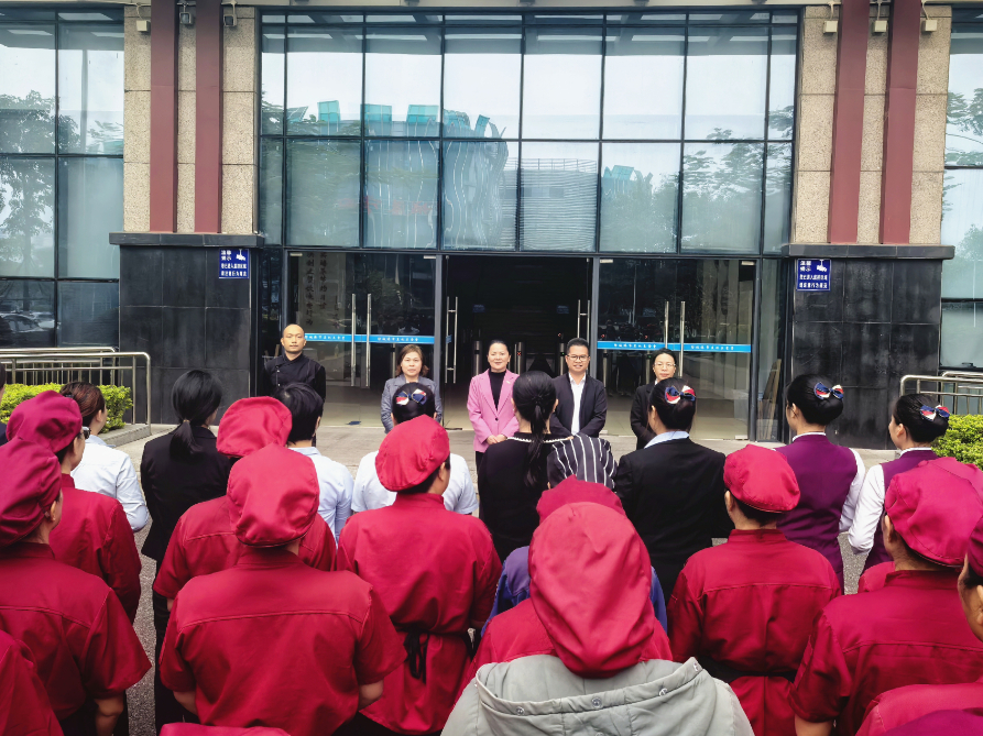 演练紧扣实战需求,分步强化关键技能。首先,由食堂安全专员对全体人员进行灭火器规范操作再培训,确保员工熟练掌握初期灭火技能。随后,针对油锅起火核心风险点,重点强化应急处置专项培训,详细讲解并演示油锅灭火“三步法”。最后进行实战模拟,员工在模拟油锅起火后迅速示警、规范扑救;模拟火情升级时,组织全体人员规范有序撤离至安全区域,过程响应迅速、协同高效。