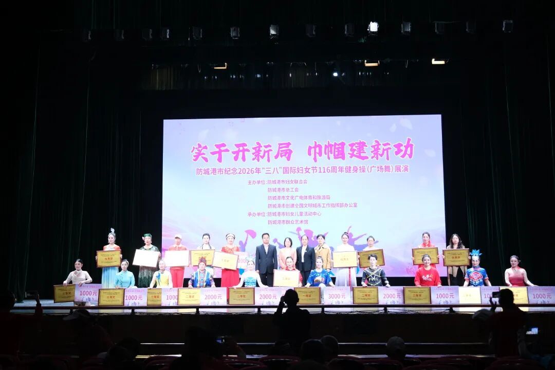 为庆祝2026年“三八”国际妇女节,展现新时代女性风采,3月5日,由市妇联等多部门联合举办的纪念“三八”国际妇女节健身操(广场舞)展演活动在防城港市文化艺术中心精彩上演。