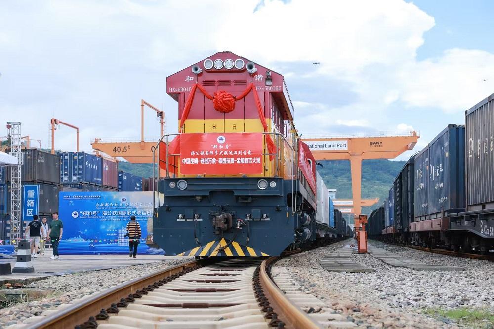 “郑和号”海公铁多式联运班列昆明首发。——民生为本,延伸拓展服务网络。