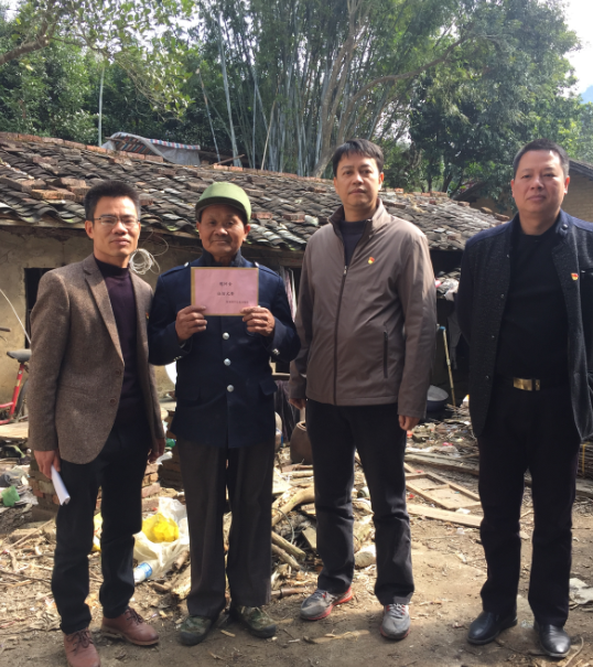 2018.2.6卢副局长到防城区大录镇那蕾村调研,与生活困难贫困户合影