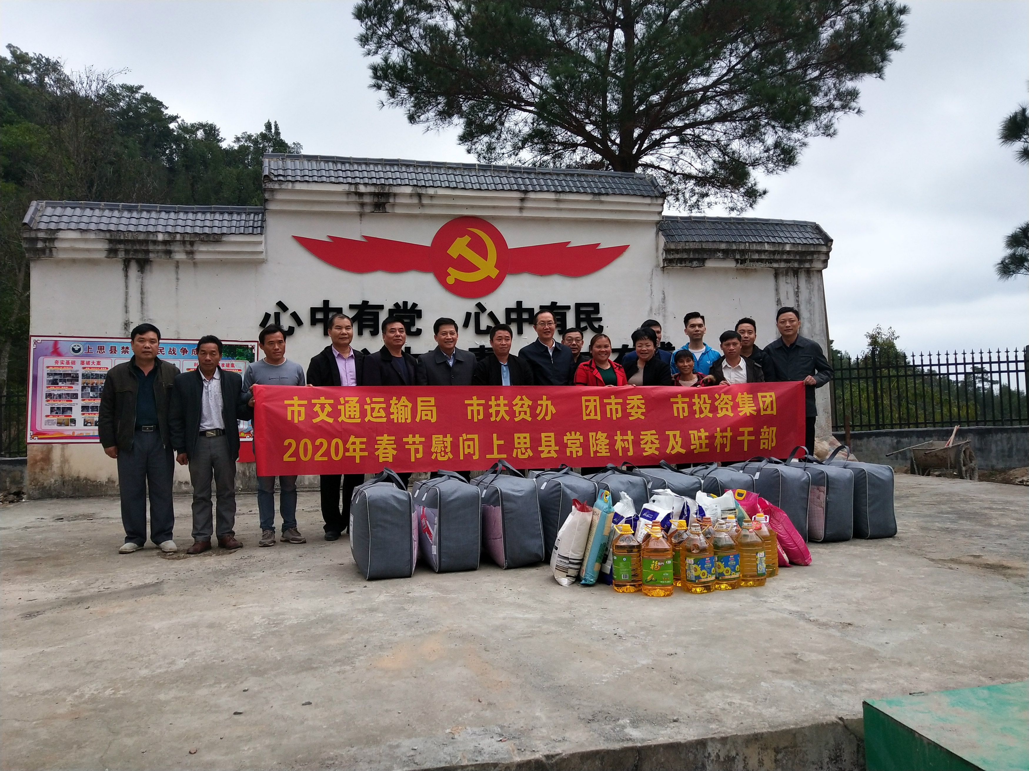 2020年1月16日,市交通运输局牵头联合市扶贫办、团市委、市投资集团2020年慰问上思南屏乡常隆村委及驻村干部。