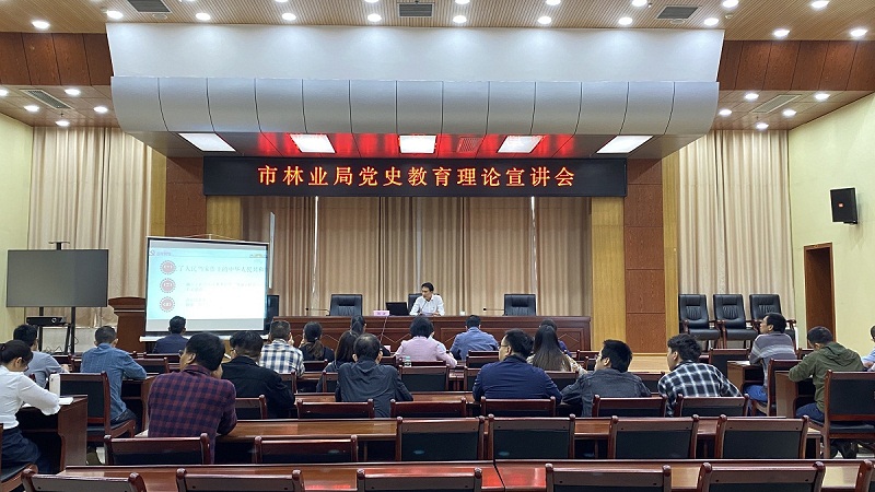 市林业局党组成员、副局长、党总支副书记陈波以“中国共产党百年辉煌和百年未有之大变局”为主题,进行了党史教育理论宣讲。陈波同志从中国共产党百年辉煌历程、伟大变迁、珍贵经验以及百年未有之大变局的表现、重要影响、重要条件等内容进行深刻讲解,为党员干部职工上了一堂内容丰富、内涵深刻的辅导课。他指出,有中国共产党建党百年创造辉煌业绩提供的重要条件,有以习近平同志为核心的党中央坚强领导,有全党全国各族人民团结奋斗,我们党和国家一定能积极应对和有力驾驭百年未有之大变局,实现中华民族伟大复兴宏伟目标。