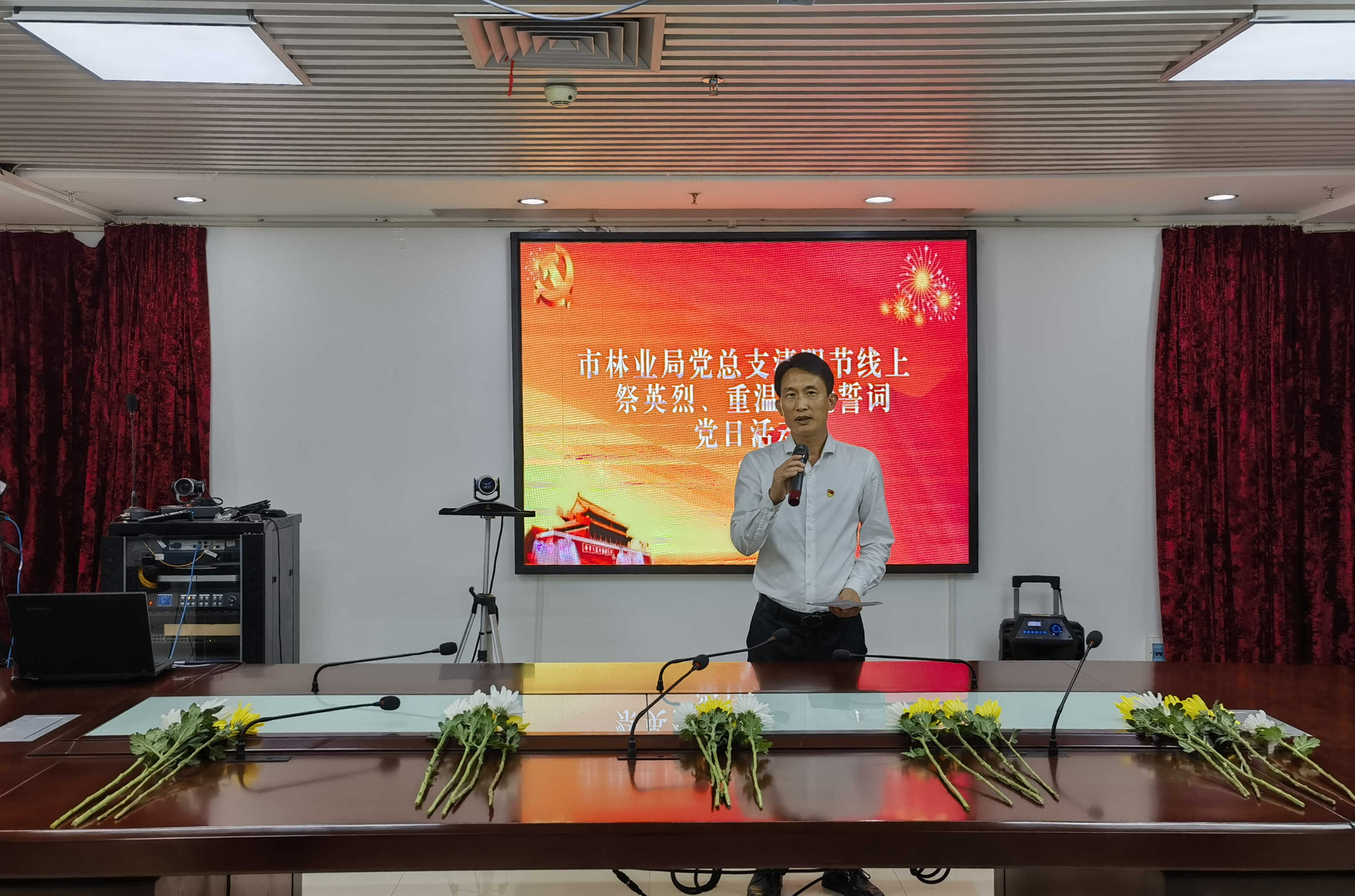 2023年4月7日上午,为深切缅怀革命先烈、弘扬英雄精神、继承革命传统,增强广大党员无私奉献、敢打敢拼、开拓进取、服务群众的责任意识,市林业局党总支组织全体党员在局会议室开展清明节线上祭英烈、重温入党誓词党日活动。党总支副书记陈波同志参加,活动议程共分为四项。