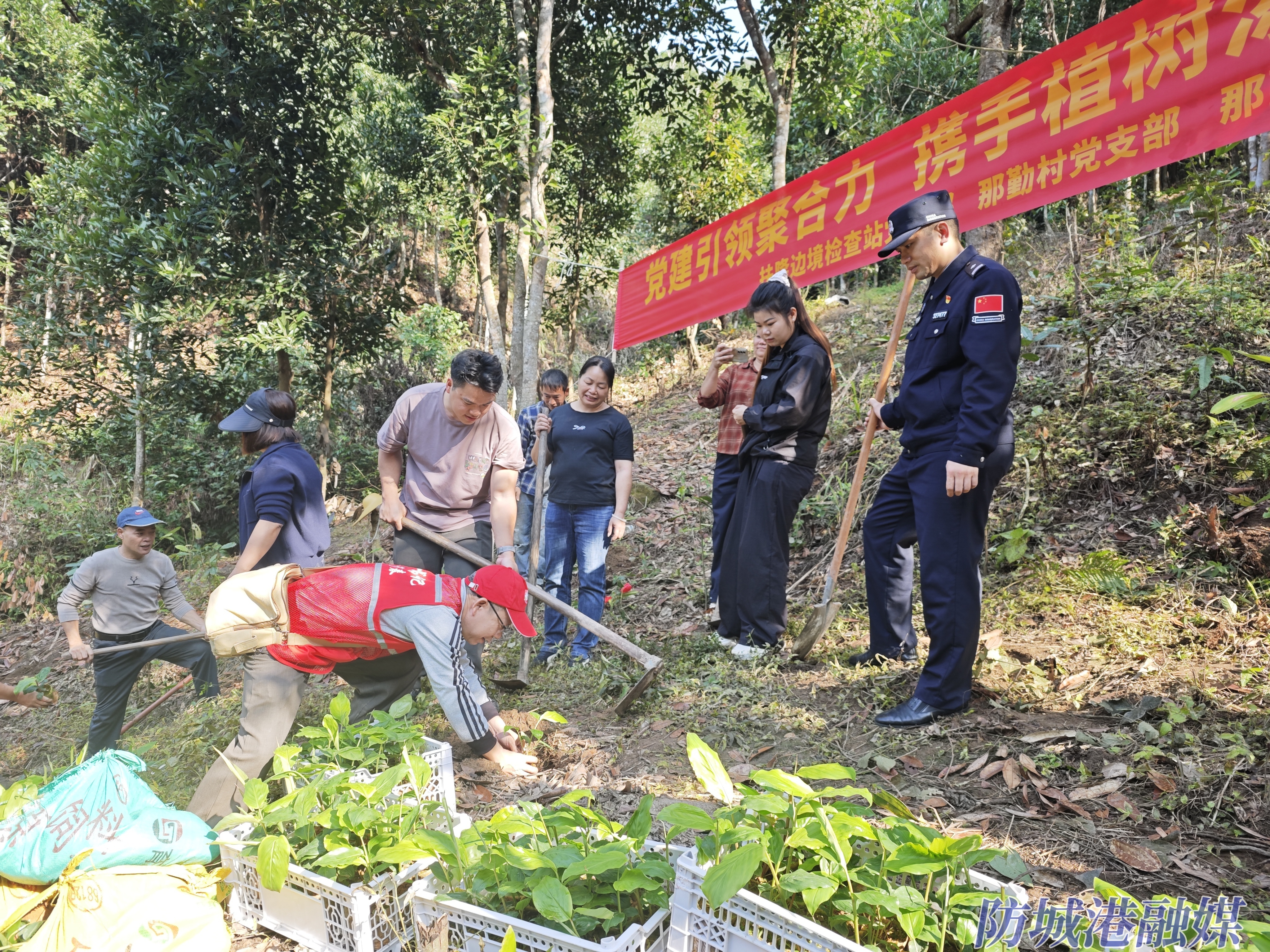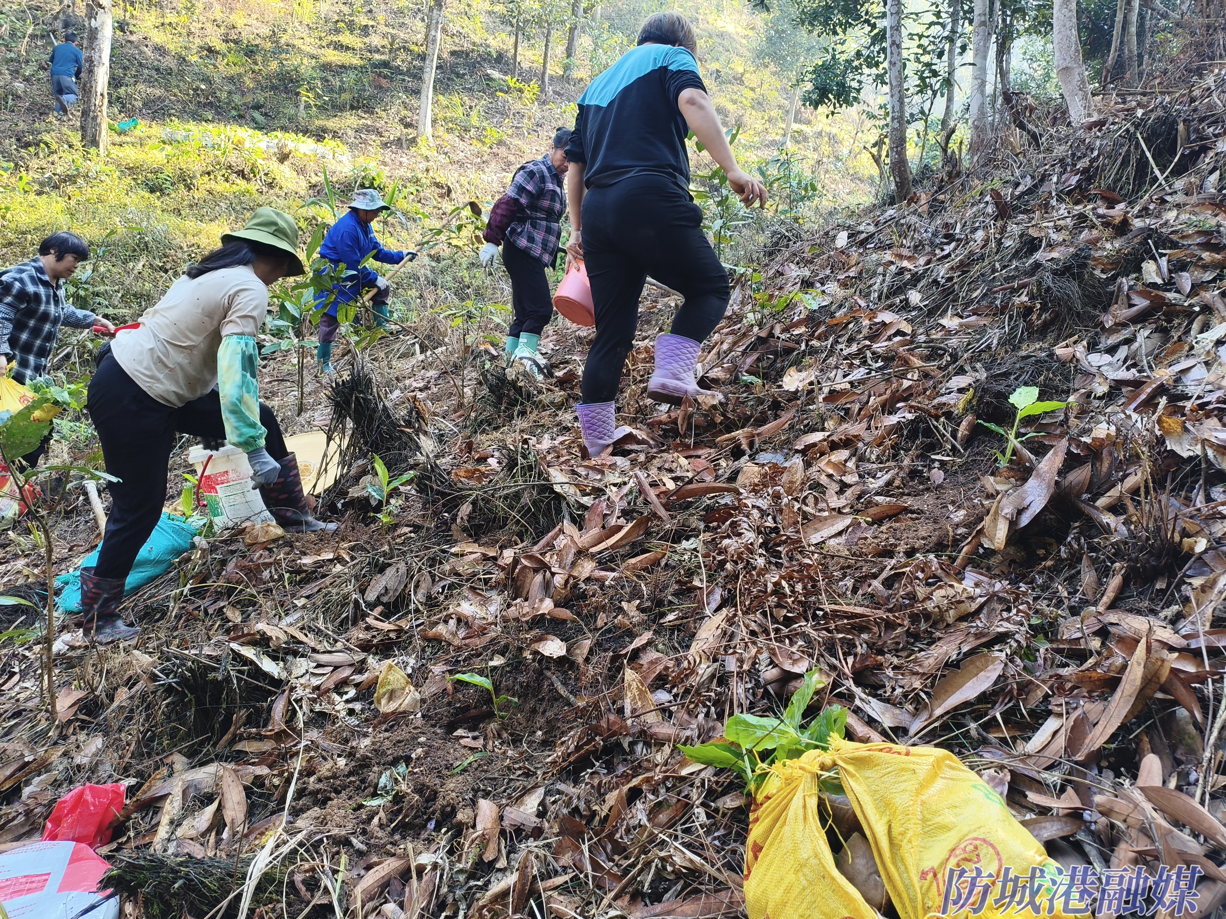 3月12日,在广西十万大山南麓的防城区扶隆镇那勤村,70亩肉桂林间一派忙碌,村“两委”干部、驻村工作队与农户携手开展草豆蔻前期种植工作。