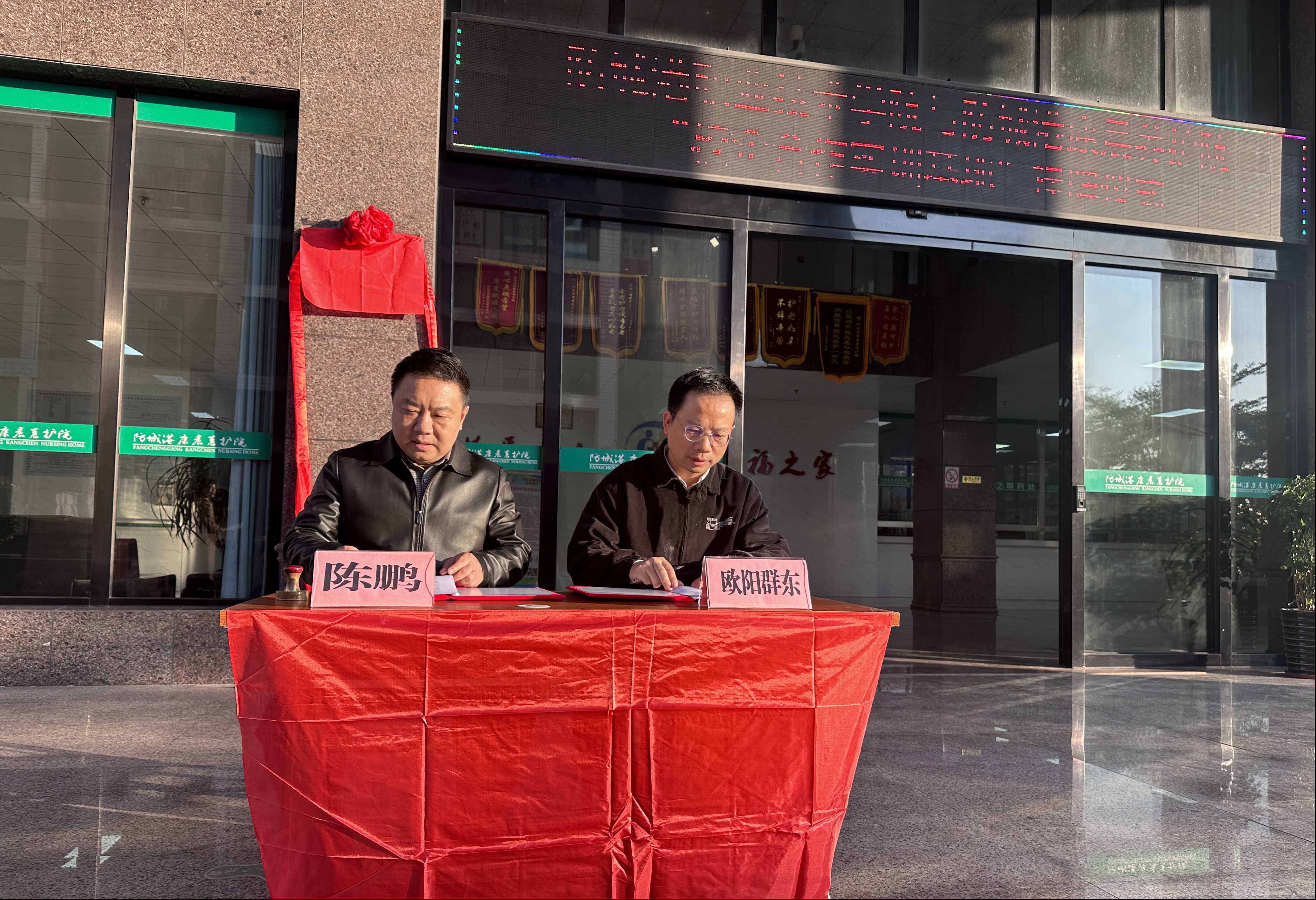 在领导致辞环节,防城港职业技术学院校长欧阳群东指出,共建实习实训基地是学校深化“校企合作、工学结合”人才培养模式的关键举措,旨在实现教学与实践的无缝对接,同时为康养产业输送专业人才。防城港康晨养护院院长陈鹏表示,合作将为养护院注入专业力量,提升服务与管理水平。养护院将提供规范的实习岗位与师资,共同探索符合行业需求的育人路径。随后,欧阳群东校长与陈鹏院长双方签署合作协议,正式确立了长期稳定的校企合作关系。
