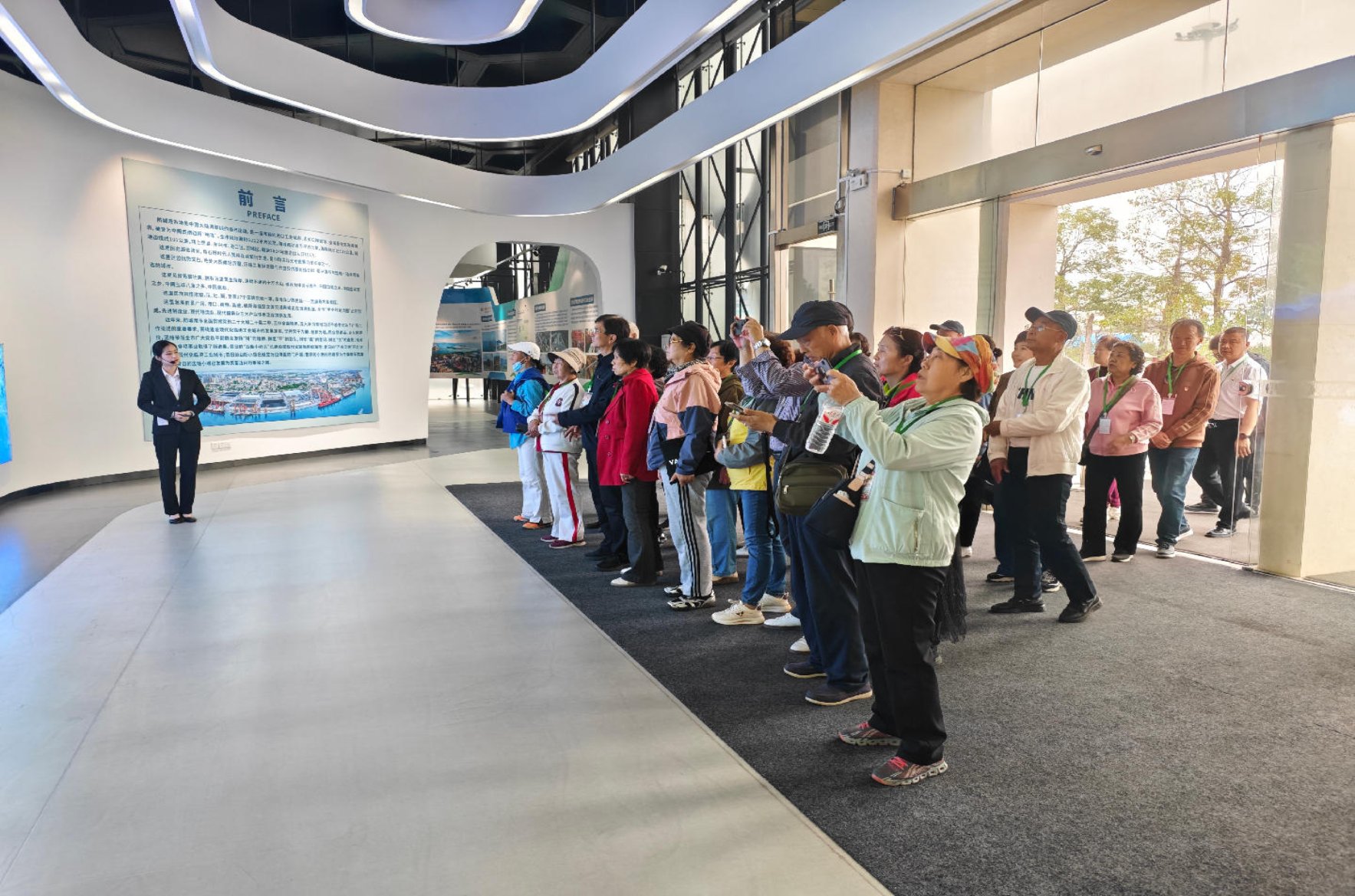清晨,参与活动的老人们在公益大食堂享用过营养早餐并完成健康检测后,怀着愉悦的心情准时出发。他们首先来到“城市之窗”规划馆,在讲解员的详细介绍中,纵览防城港的城市蓝图与发展成就;随后走进国际医学开放试验区,深入了解我市在医学创新与传统医药领域的最新进展;在风景如画的园博园,老人们漫步赏景,感受生态之城的魅力;下午,大家依次参观了承载历史的市博物馆、充满趣味的科技馆以及记录港口变迁的港务局码头、322工程馆等。每到一处,都有专业的讲解和周到的服务相伴。行程中还穿插了健康监测、互动交流、集体合影等环节,全程配备医疗保障和后勤服务团队,确保老人们玩得开心、行得安心。