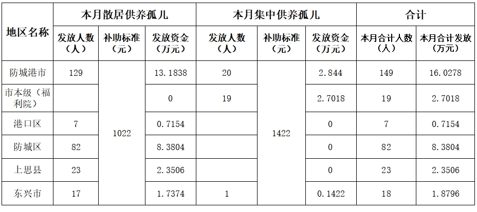 2024年5月孤儿养育金发放情况统计表