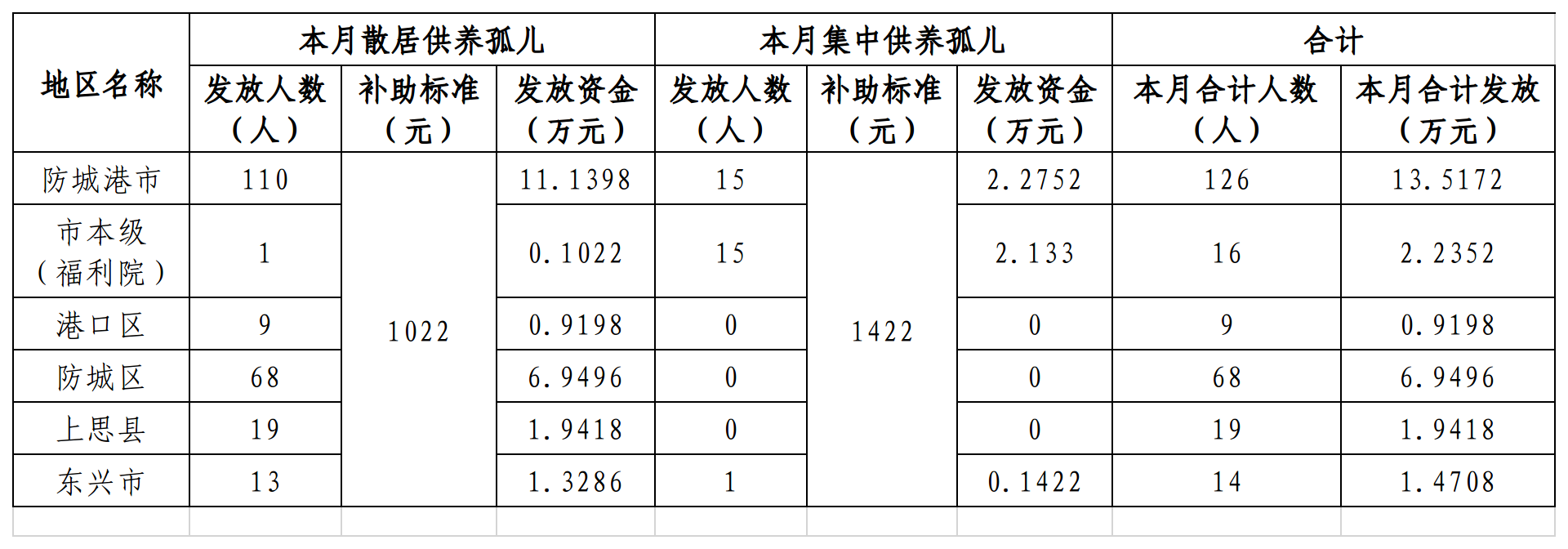 2025年11月孤儿养育金发放情况统计表