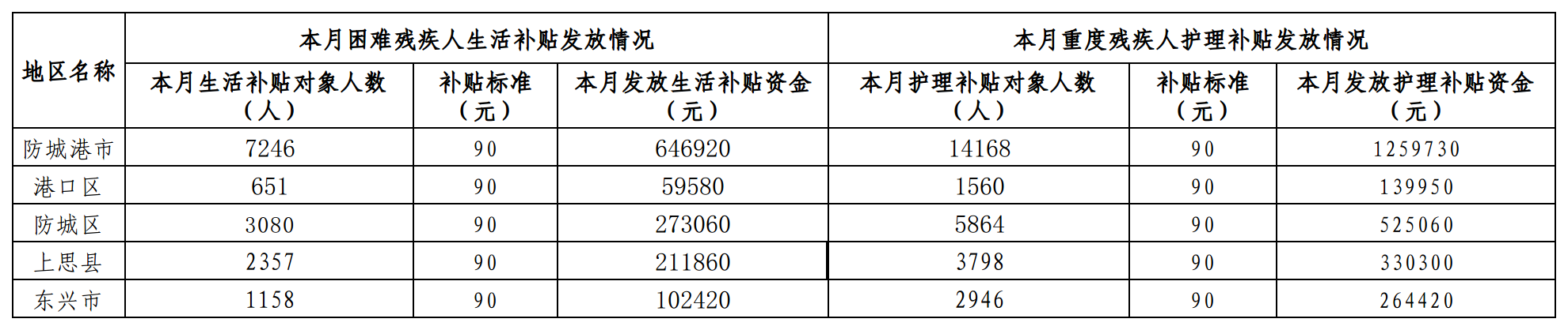 2026年2月残疾人两项补贴发放情况统计表