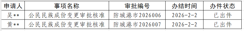 广西壮族自治区公民变更民族成份审批意见书2026年第四批