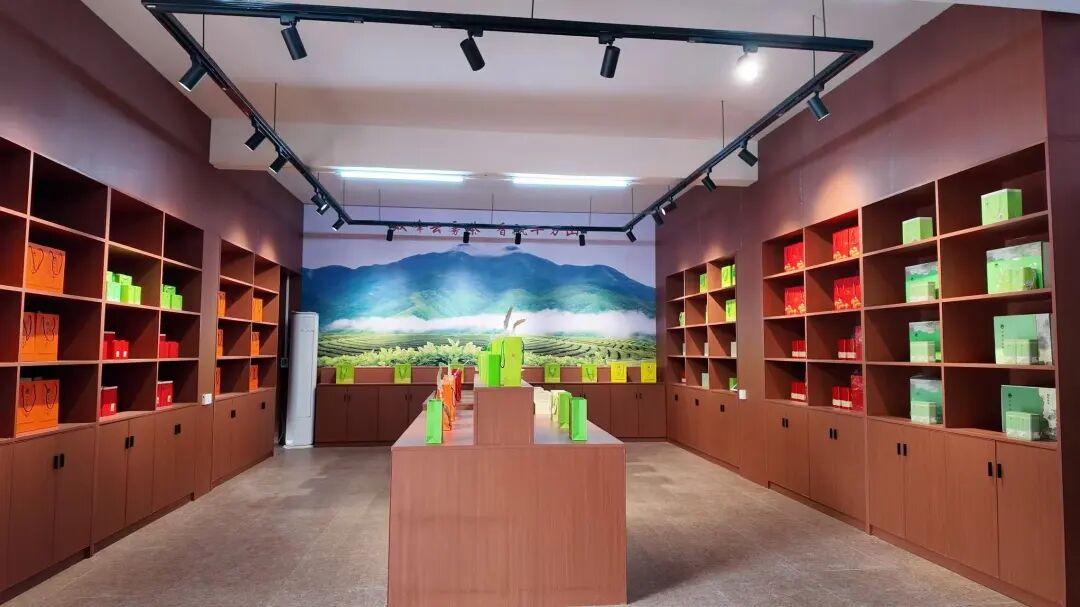 ▲展销馆内摆放十万山双峰云雾茶。