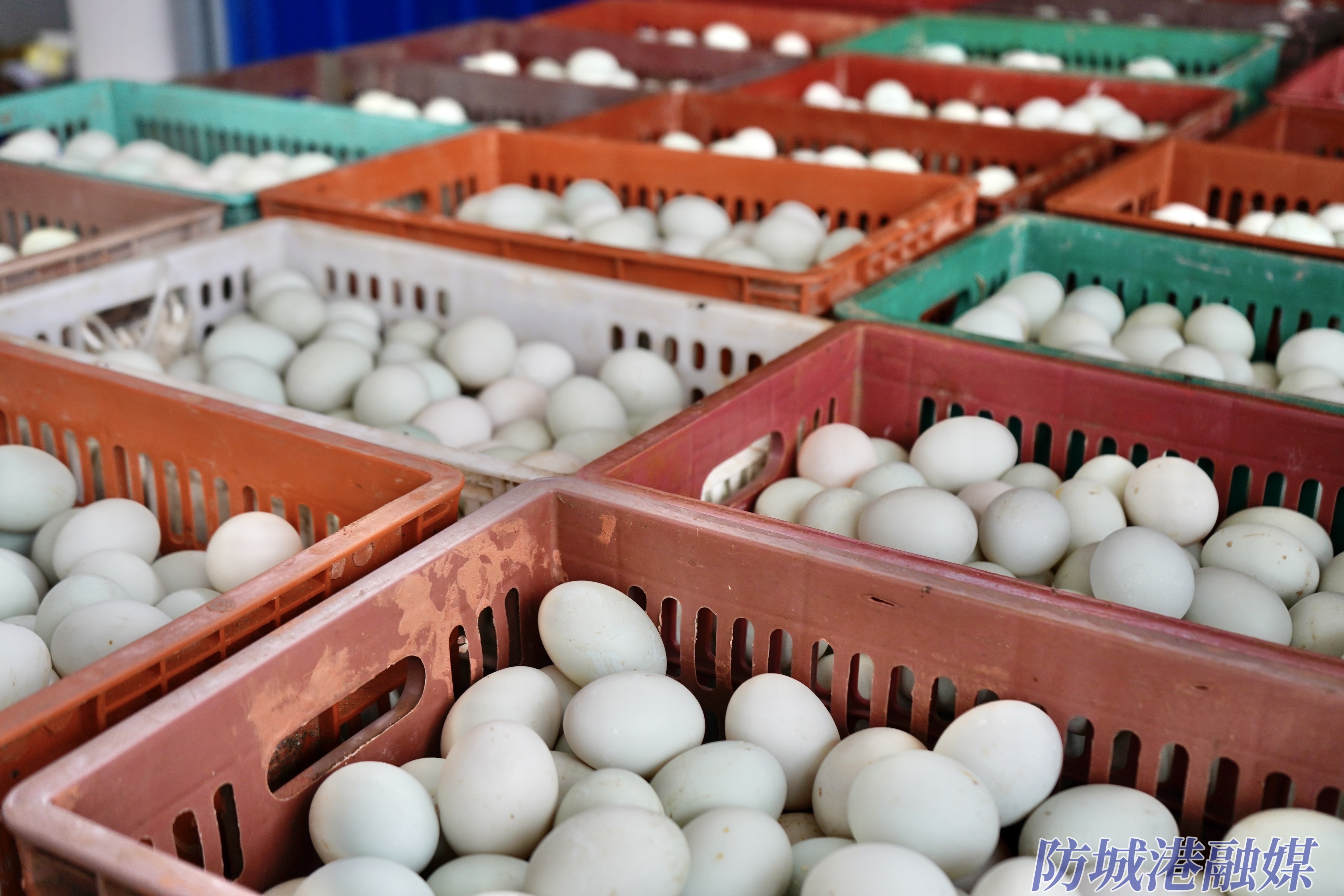 “这些鸭蛋全被客户提前预订了,供不应求。”基地负责人王嘉麒告诉记者,该基地一栋场舍于2025年9月正式投产运营,目前养殖31800羽蛋鸭。这批鸭子经过散养112天后转入笼舍,长至150天左右开始产蛋,现在日龄264天,正处于产蛋高峰期,日均产蛋接近4000斤,产蛋率为93%。基地实行订单式销售,鲜蛋主要销往北海、钦州、南宁等地的食品加工厂。