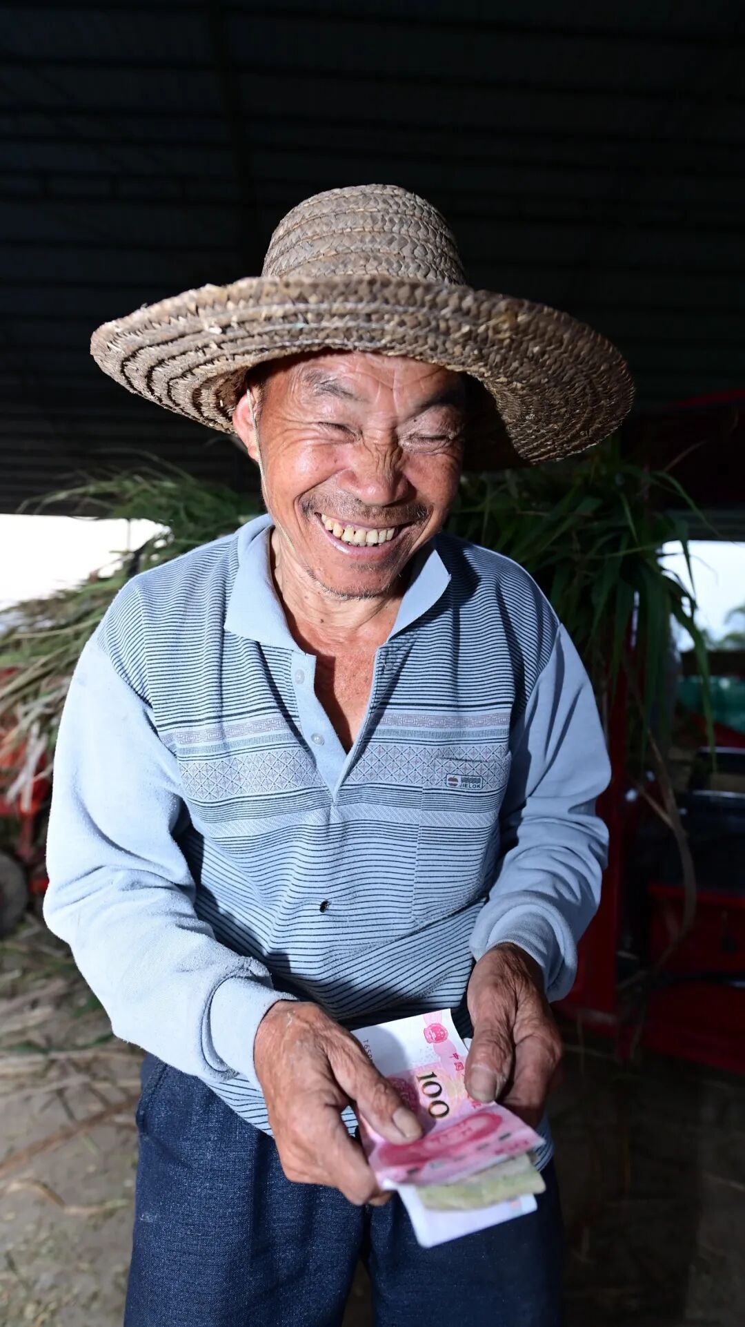 2月27日,村民凌维礼拿到现金后,笑容满面。韦世仙 摄