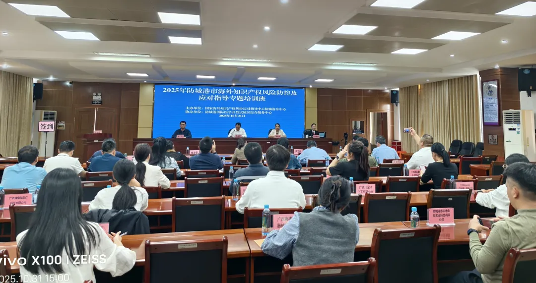 为进一步提升企业应对海外知识产权风险的能力,强化知识产权保护意识,提高企业知识产权和创新创造能力。10月31日下午,国家海外知识产权纠纷应对指导中心防城港分中心举办了2025年防城港市海外知识产权风险防控及应对指导专题培训班。全市各县(市、区)知识产权业务骨干,以及重点涉外企业、科技型中小企业的知识产权管理人员约50人参加培训班。