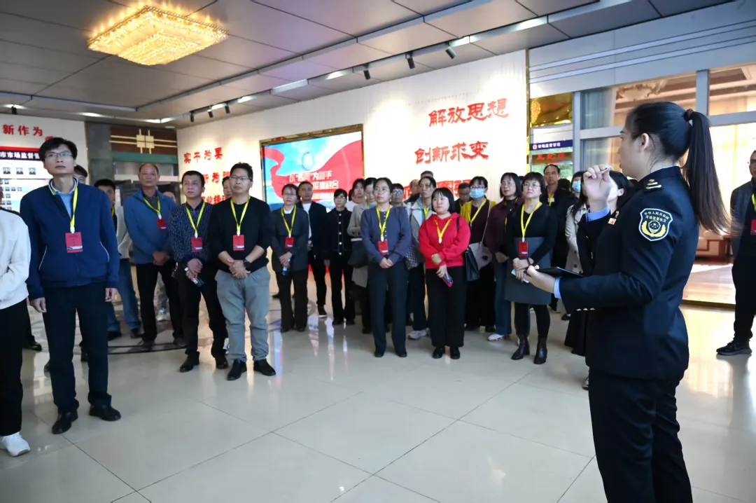 学员们在市市场监管局党建功能阵地实地观摩,详细了解以“四同”(党建业务同谋划、同部署、同落实、同检查)机制为抓手、创新实施“1315”举措、打造“市监315 党建海边山”党建品牌的实践路径,围绕党建与执法监管、民生服务、产业赋能深度融合的工作模式交流探讨,学习氛围浓厚。