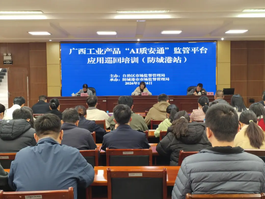 为推动广西工业产品“AI质安通”监管平台全面落地应用,提升市场监管领域数字化履职能力,1月16日,自治区市场监管局在防城港市市场监管局开展平台应用巡回培训。自治区市场监管局产品质量安全监督处副处长黄飞雪参加培训并作讲话。