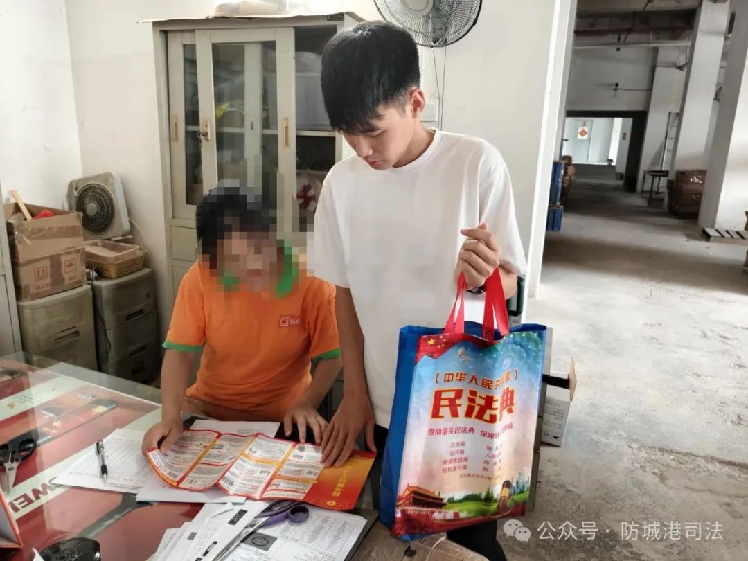 图为司法所工人作人员进企业进行民法典宣传