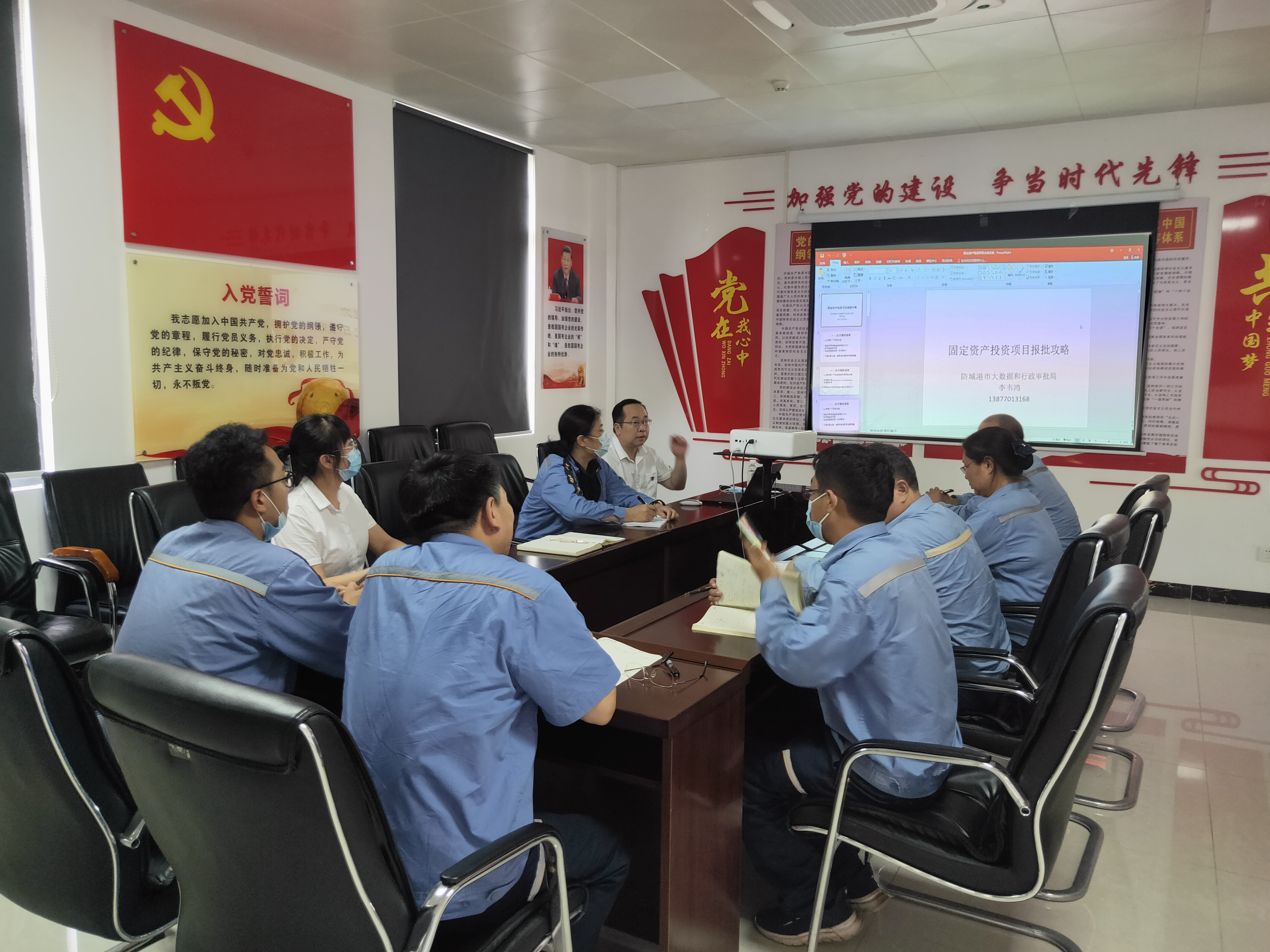 6月22日,市大数据和行政审批局第二支部委员会与广西华昇新材料科技有限公司工程支部委员会开展以“学业务提能力”为主题的固定党日活动。活动由市大数据和行政审批局项目投资科科长李韦鸿作固定资产投资项目报批业务培训,华昇公司18名项目业务负责人参加了培训。李科长从项目申报的前期准备、流程、材料的组织、注意的事项,以及审批事项如何并联申报,如何利用审批改革成果简化审批等方面进行了通俗易懂的讲解和答疑。企业相关负责人员纷纷表示,过去由于不懂这方面的情况,不仅导致项目申报效率低,进展慢,还走了很多冤枉路,花了很多冤枉钱,通过李科长的讲解,对项目报批的业务终于有了头绪,工作步骤清晰了,知道工作该怎么高效推进了,培训收获满满。这次培训是政企党建与业务深度融合发展的展现,必将对今后党建工作的提升产生积极的影响。