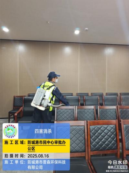 近日,为了广大市民群众与工作人员的健康安全,有效预防蚊媒传染病的发生与传播,特别是防范基孔肯雅热疫情,市大数据和行政审批局高度重视,积极行动,组织开展了对市民中心全方位的专业消杀与积水清理专项爱国卫生行动,此次行动聚焦于消除蚊虫孳生环境、切断疾病传播途径。专业消杀团队对市民中心内部的办事大厅、走廊、卫生间等所有公共区域,进行“无死角”的药物喷洒作业,使用对人体安全无害、对环境友好且高效低毒的卫生杀虫剂,旨在彻底杀灭成蚊及蚊幼虫(孑孓),显著降低蚊虫密度。