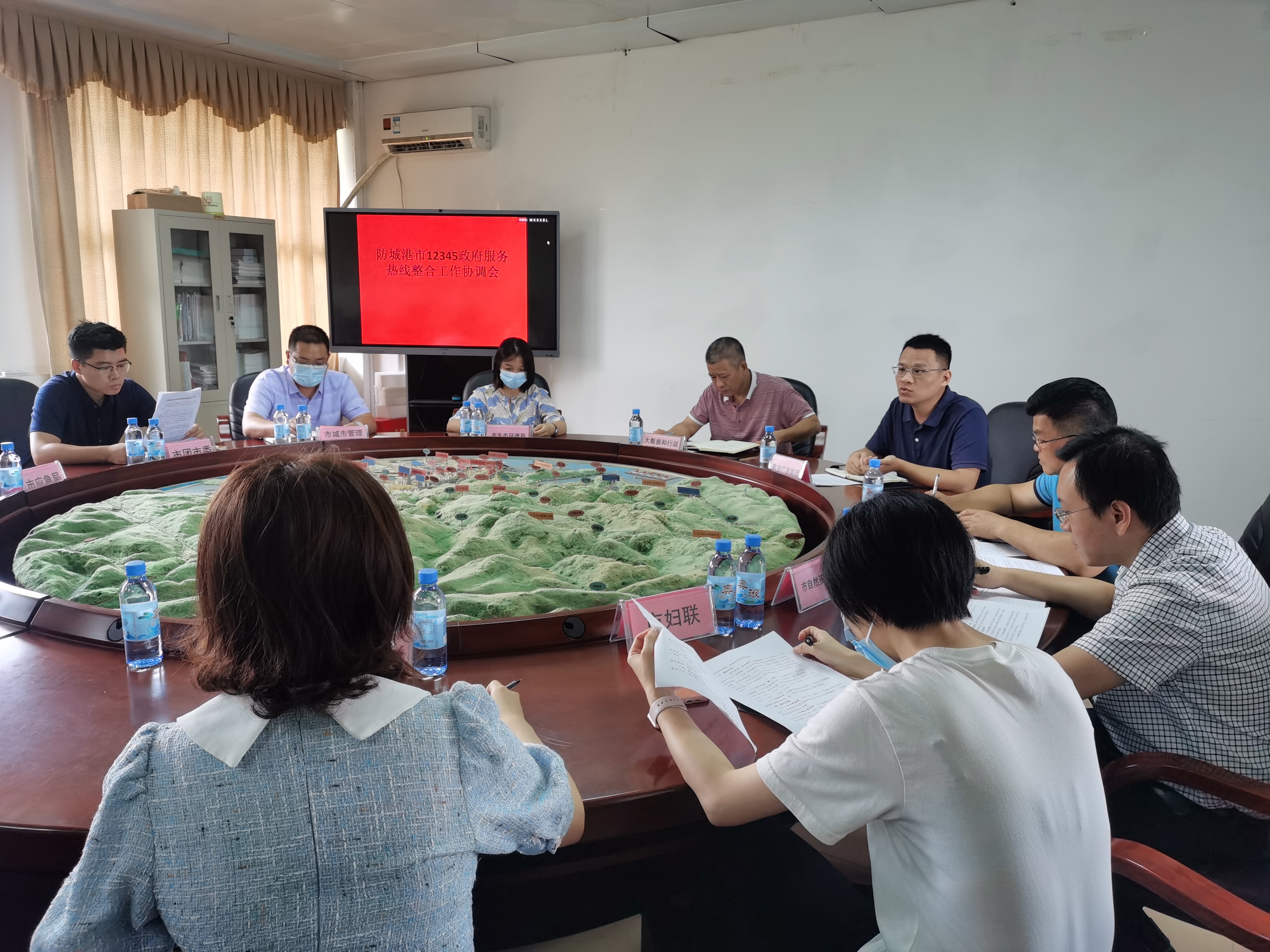 为顺利推进12345政府服务热线整合工作,2020年6月17日上午,防城港市大数据和行政审批局组织市自然资源局、市生态环境局、市商务局、市文化广电体育和旅游局、市应急局、市城市管理监督局、市总工会、市团市委、市妇联、市残联等单位召开热线整合工作协调会。