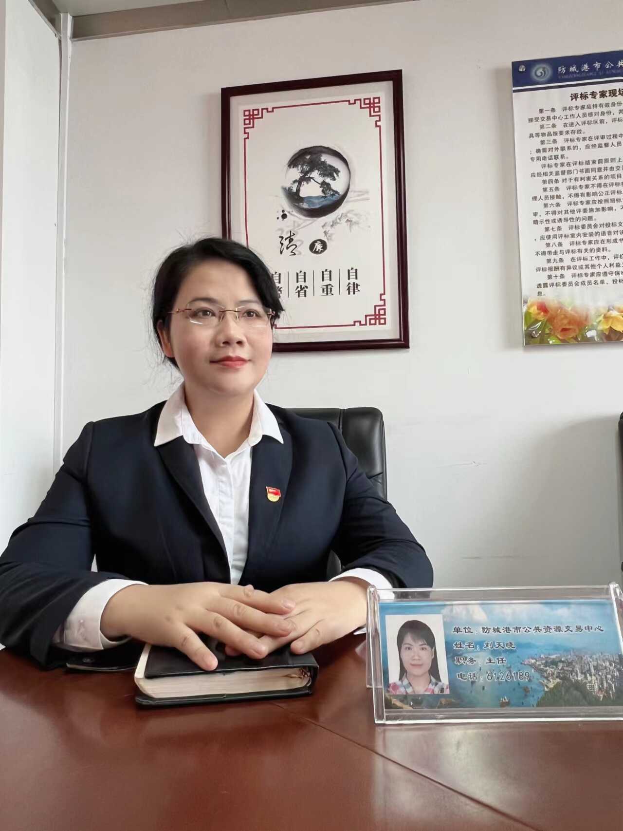 防城港市公共资源交易中心主任刘天晓,防城港市优化营商环境招标投标领域的“主攻手”。作为一名有20年党龄的老党员,刘天晓始终牢记入党初心,勇于担当善于作为,不推脱、不抱怨,主动作为、攻坚克难,以自身20多年的招标采购实践经验,做好传帮带。刘天晓任防城港市公共资源交易中心主任以来,坚持问题导向,紧盯工作各环节,明确目标任务,倒排工期,在她的带领下,全市政府采购类、工程类、权益类、土地整治工程类、高标准农田类、非政采云政府采购类等实现全流程电子化交易,实现全区首次海域使用权出让“云交易”,实现全区首个工程类项目委托代理和中标合同线上签订。公共资源交易完成数字化转型升级,公共资源交易改革迈上新台阶。