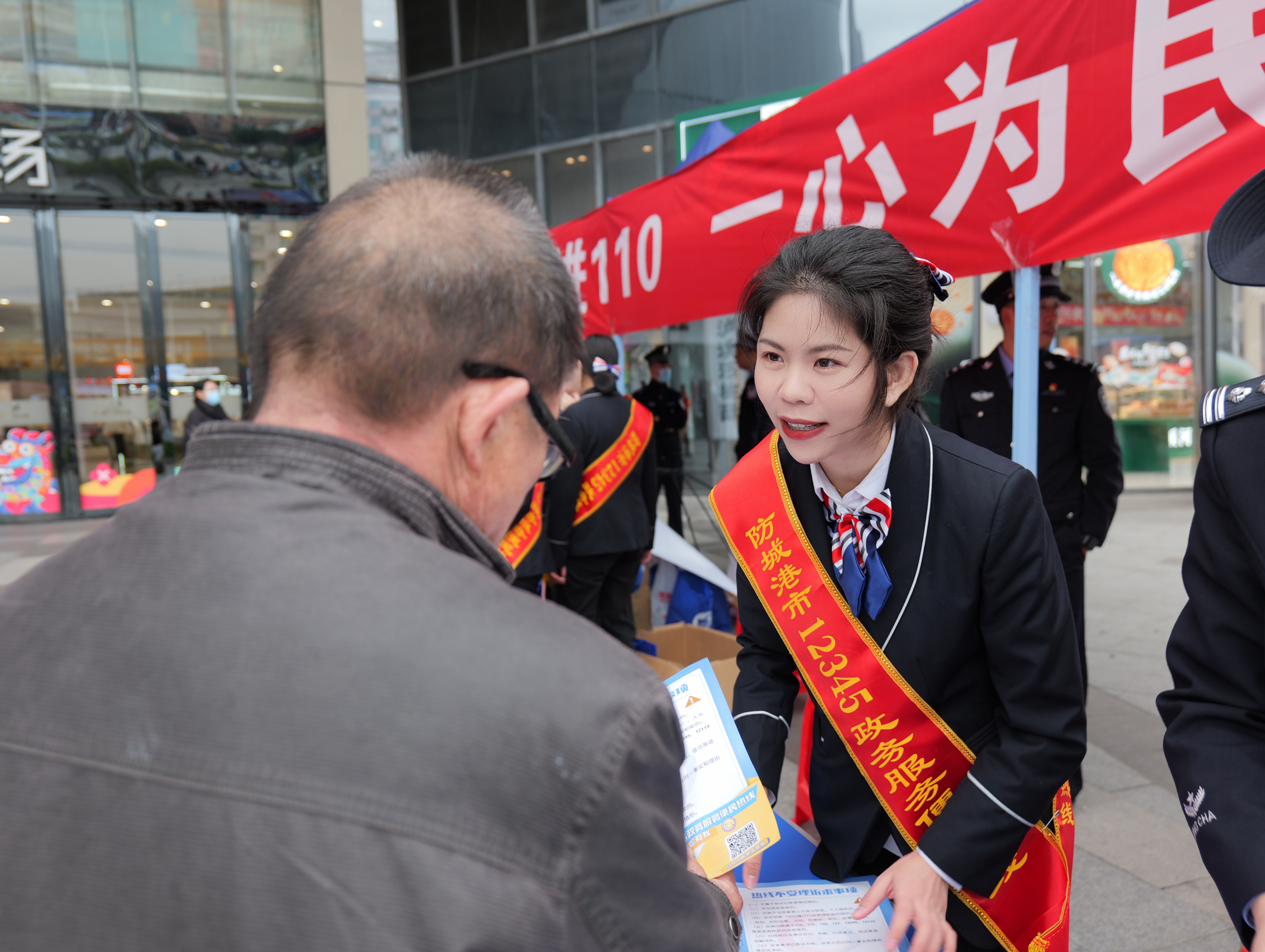 为切实推进12345政务服务便民热线和110报警服务台高效联动,进一步提升协同服务效能,引导社会各界和广大市民正确使用热线电话,2024年1月10日,防城港市12345热线与防城港市110报警服务台携手联动在防城港市防城区嘉乐城开展“政警联动,高效提升社会治理效能”主题宣传活动。