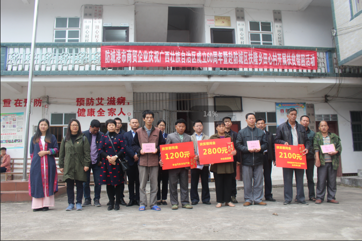 防城港市商务局党总支部联合商贸企业庆祝广西壮族自治区成立60周年暨赴防城区扶隆乡田心村开展扶贫帮困党日活动