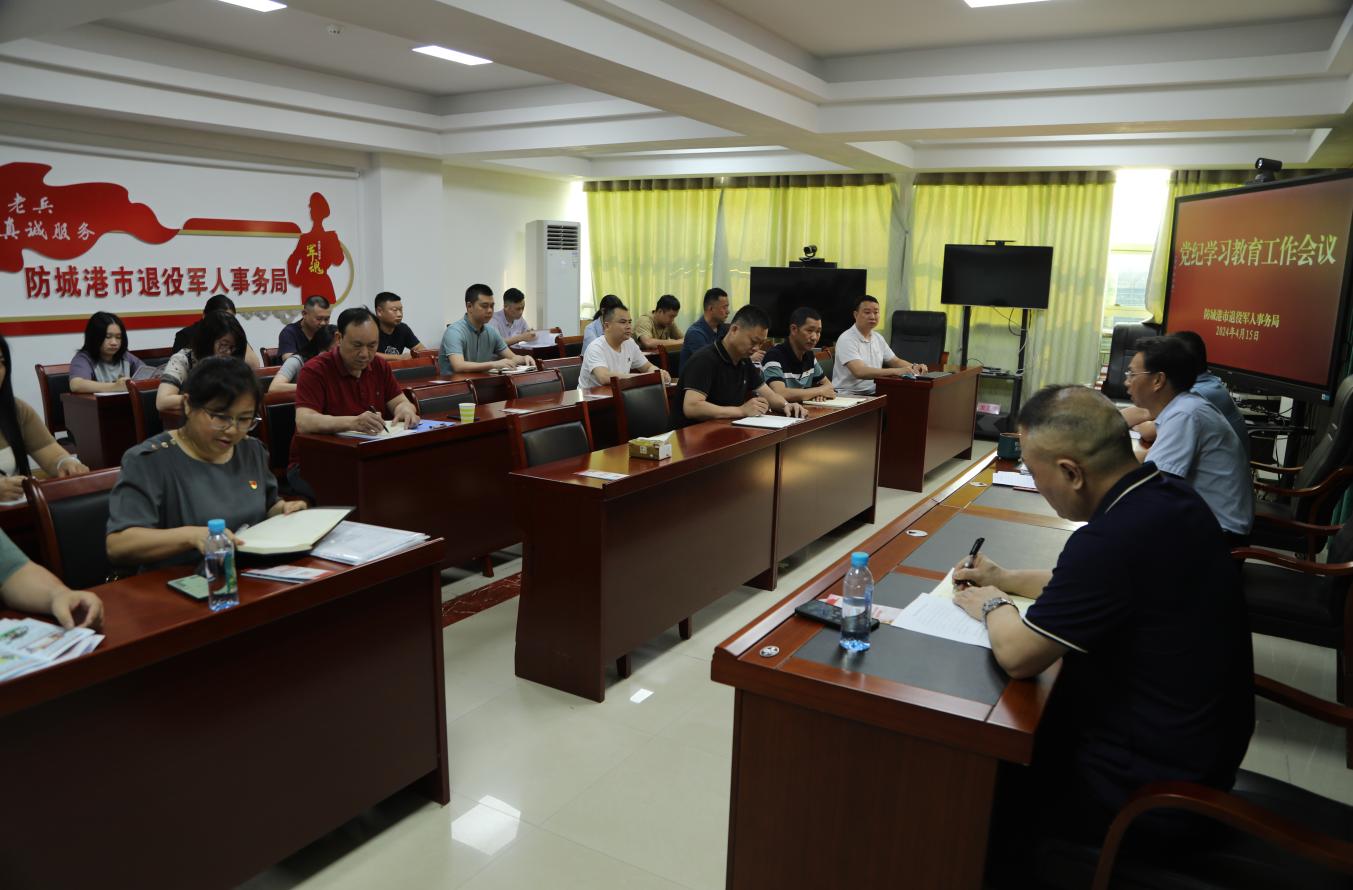 4月15日下午,防城港市退役军人事务局召开党纪学习教育动员工作会,局领导班子成员、机关及直属单位党员干部参加会议。会议深入学习习近平总书记关于党纪学习教育重要讲话和重要指示批示精神,学习党中央、自治区党委及市委关于开展党纪学习教育的会议精神,对全局开展党纪学习教育工作进行了全面部署安排。