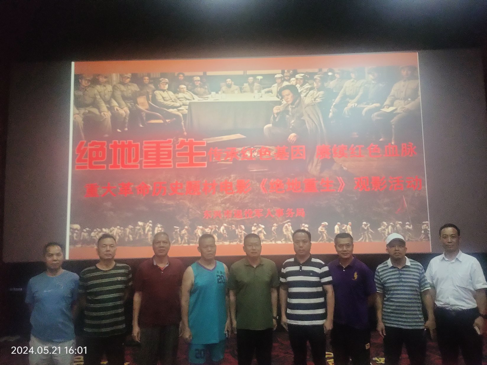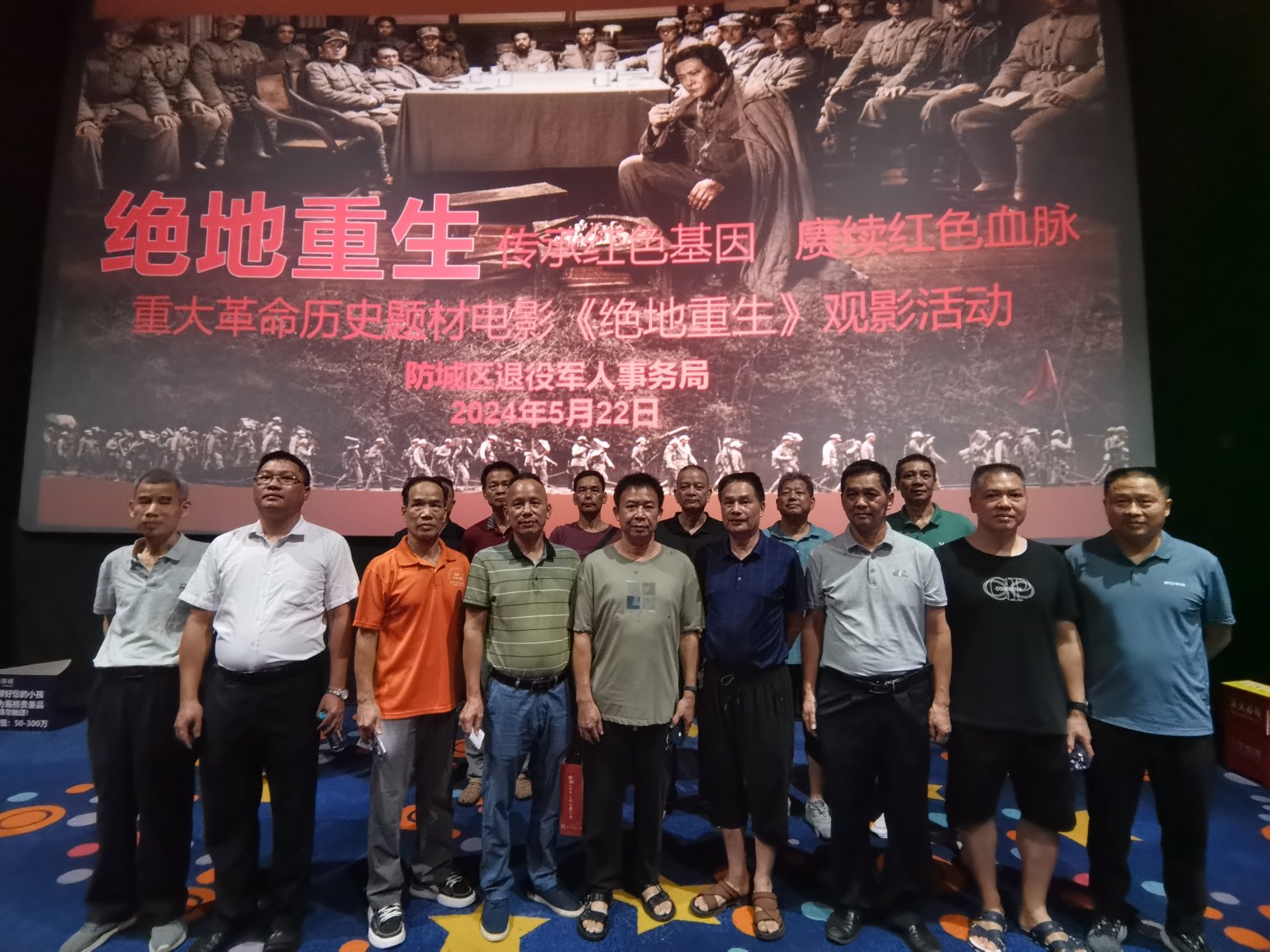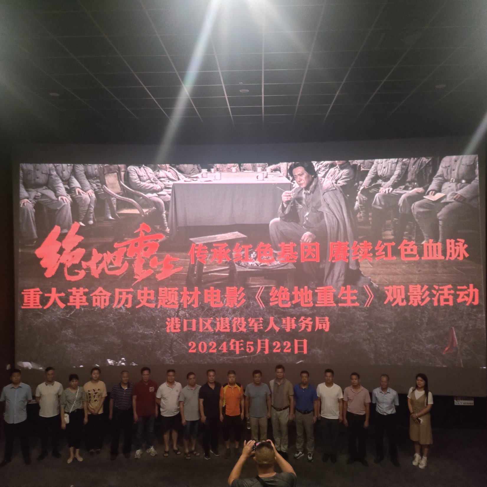为激励防城港市自主择业军转干部传承红色基因,赓续红色血脉,增强爱国意识,提高政治觉悟,提升个人修养,强化爱党爱国情怀,永葆军人本色。5月21日至22日,防城港市退役军人事务局分批组织全市60名自主择业军转干部在当地影剧院观看了重大革命历史题材电影《绝地重生》。