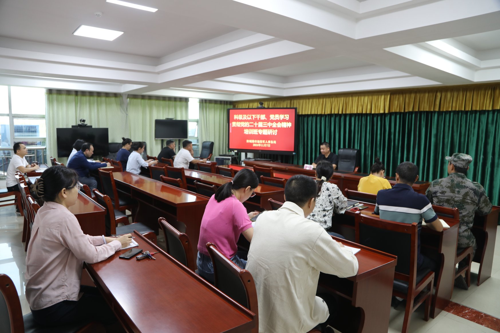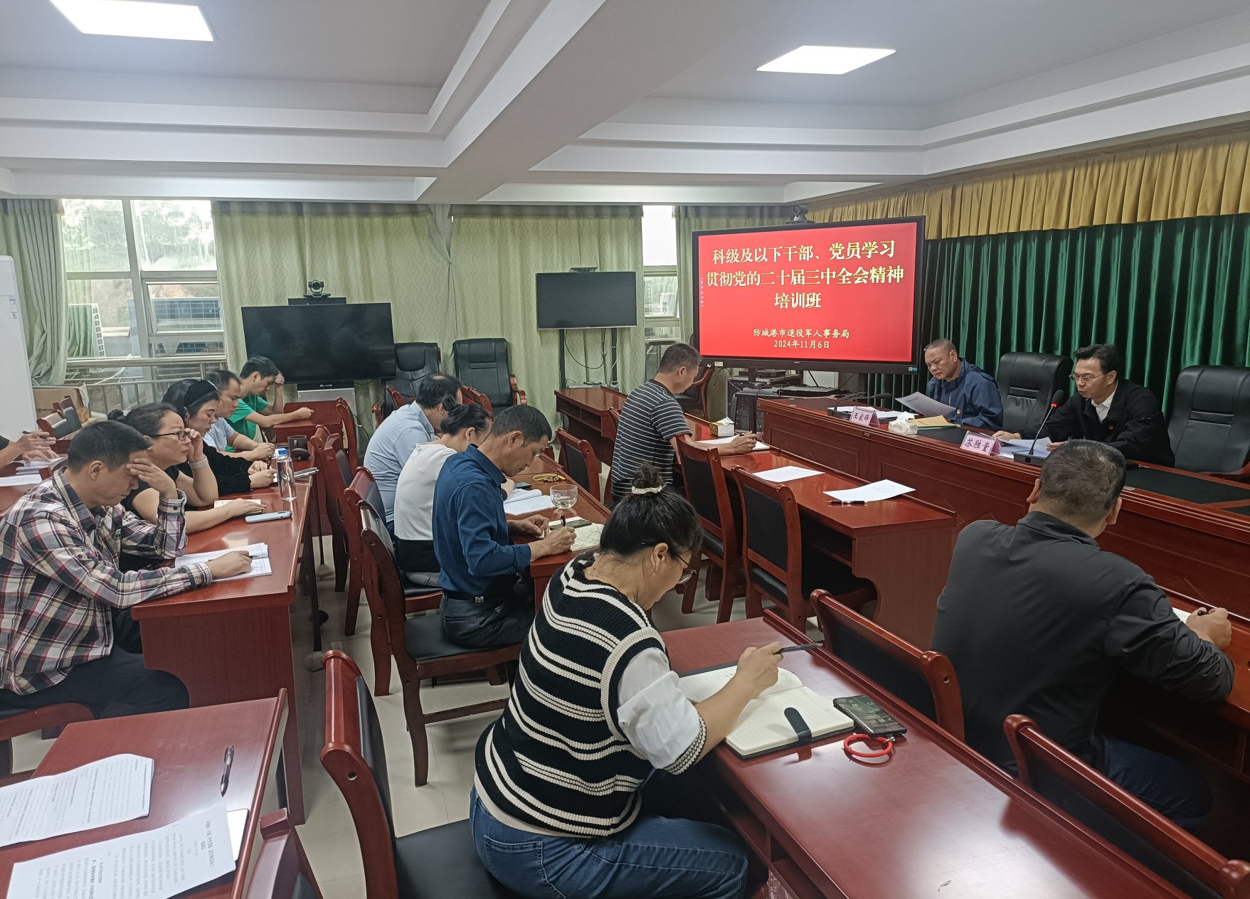 为深入贯彻落实党的二十届三中全会精神,进一步强化退役军人事务工作人员的理论武装,提升全市退役军人服务管理水平,11月6日至7日,防城港市退役军人事务局组织局机关、直属单位科级及以下干部职工近30人,开展了为期2天党的二十届三中全会精神学习培训。