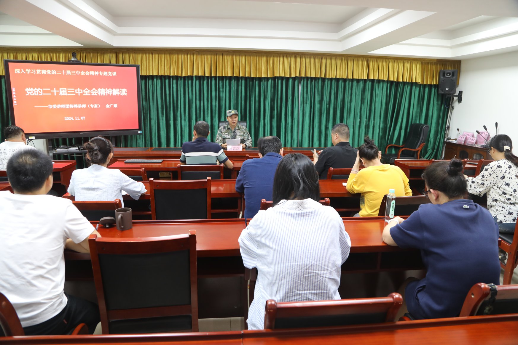 本次培训班特别邀请了市委讲师团专家金广顺进行授课,内容涵盖了党的二十届三中全会精神、经济社会发展新形势下的退役军人工作、新时代退役军人管理服务创新等多个方面。专家们通过深入浅出的讲解和生动的案例分析,帮助参加培训人员更好地理解和消化会议精神。