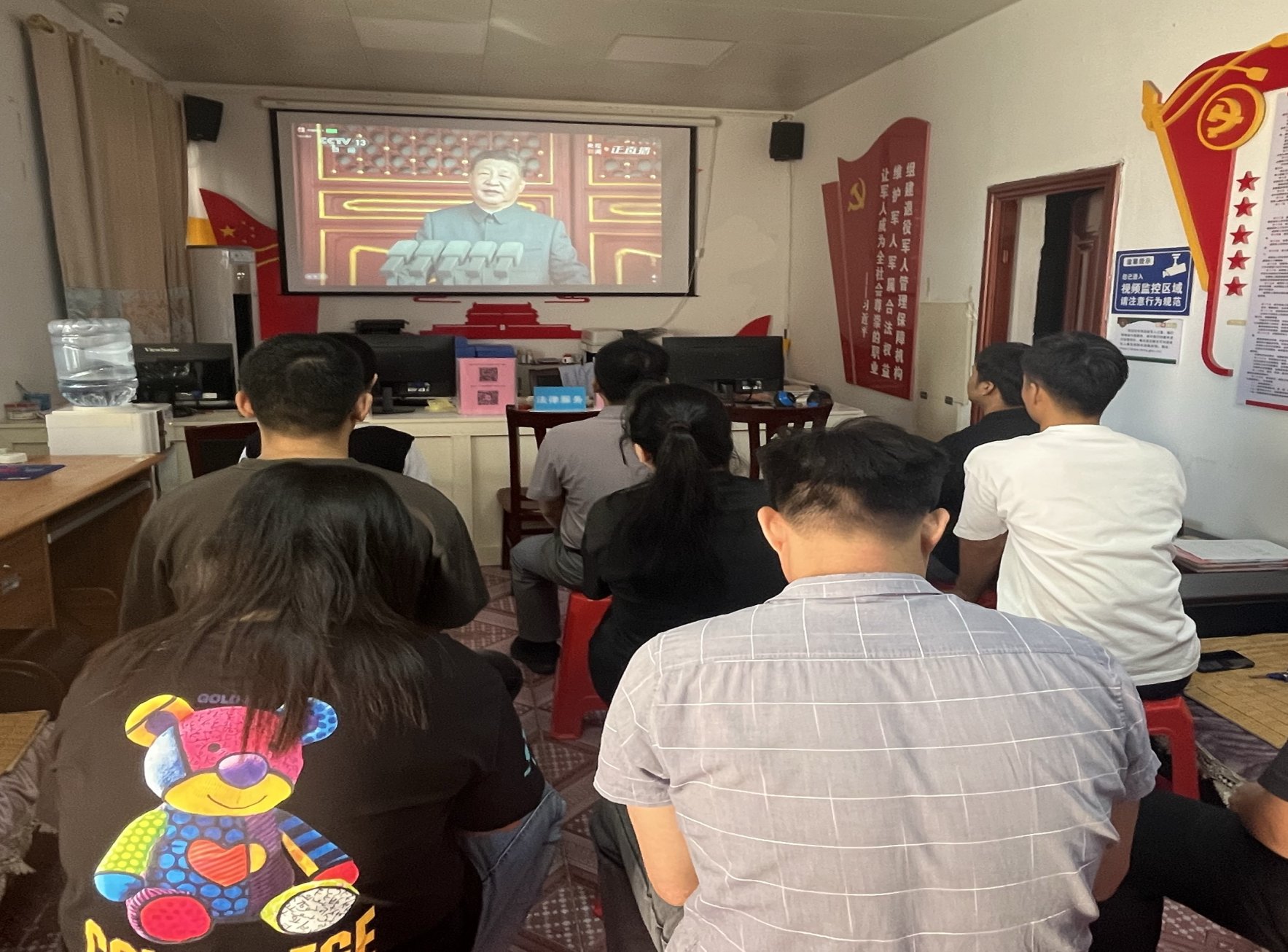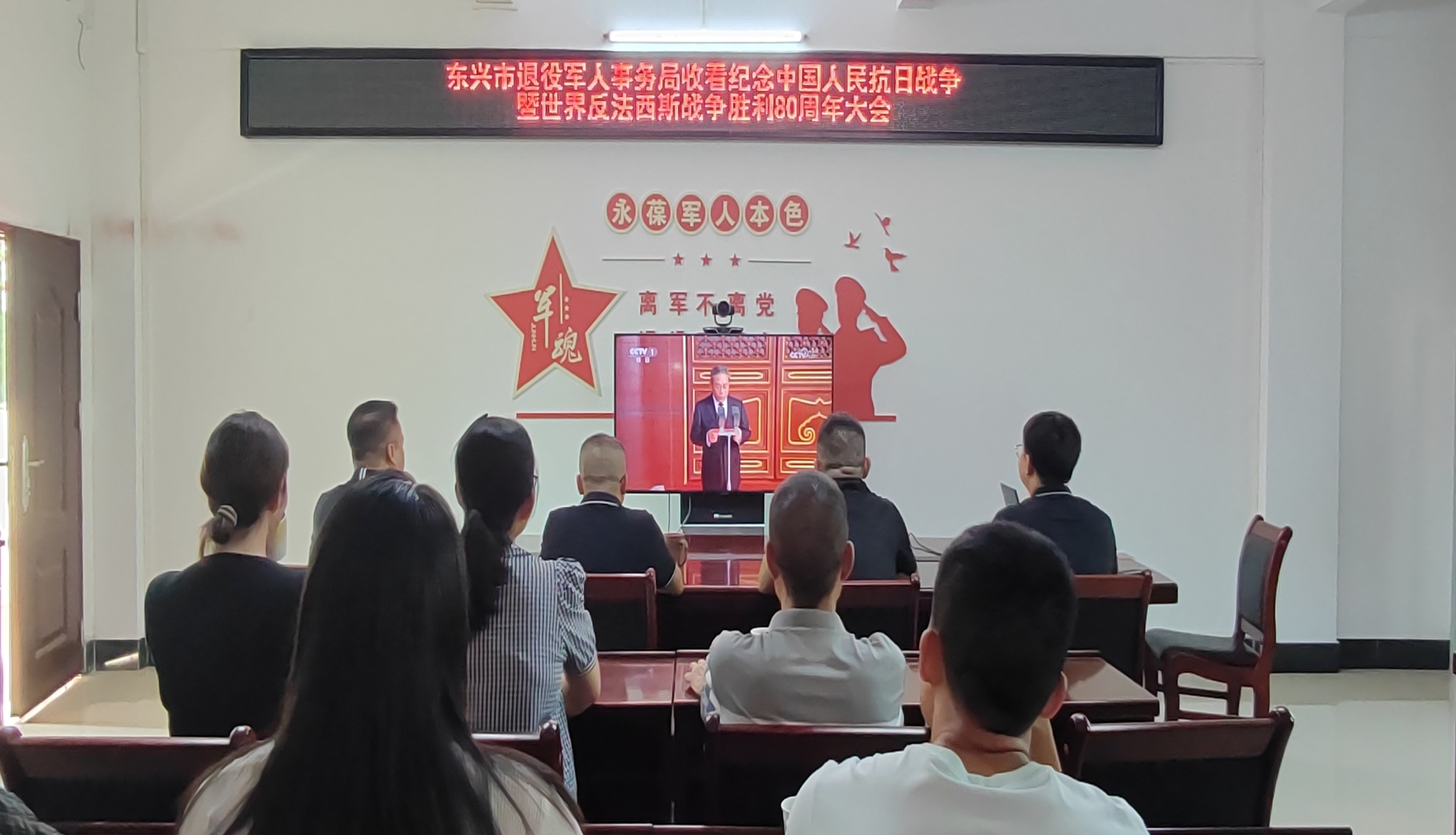 东兴市退役军人事务局集中收看抗日战争胜利80周年纪念活动大会现场。项光彩摄