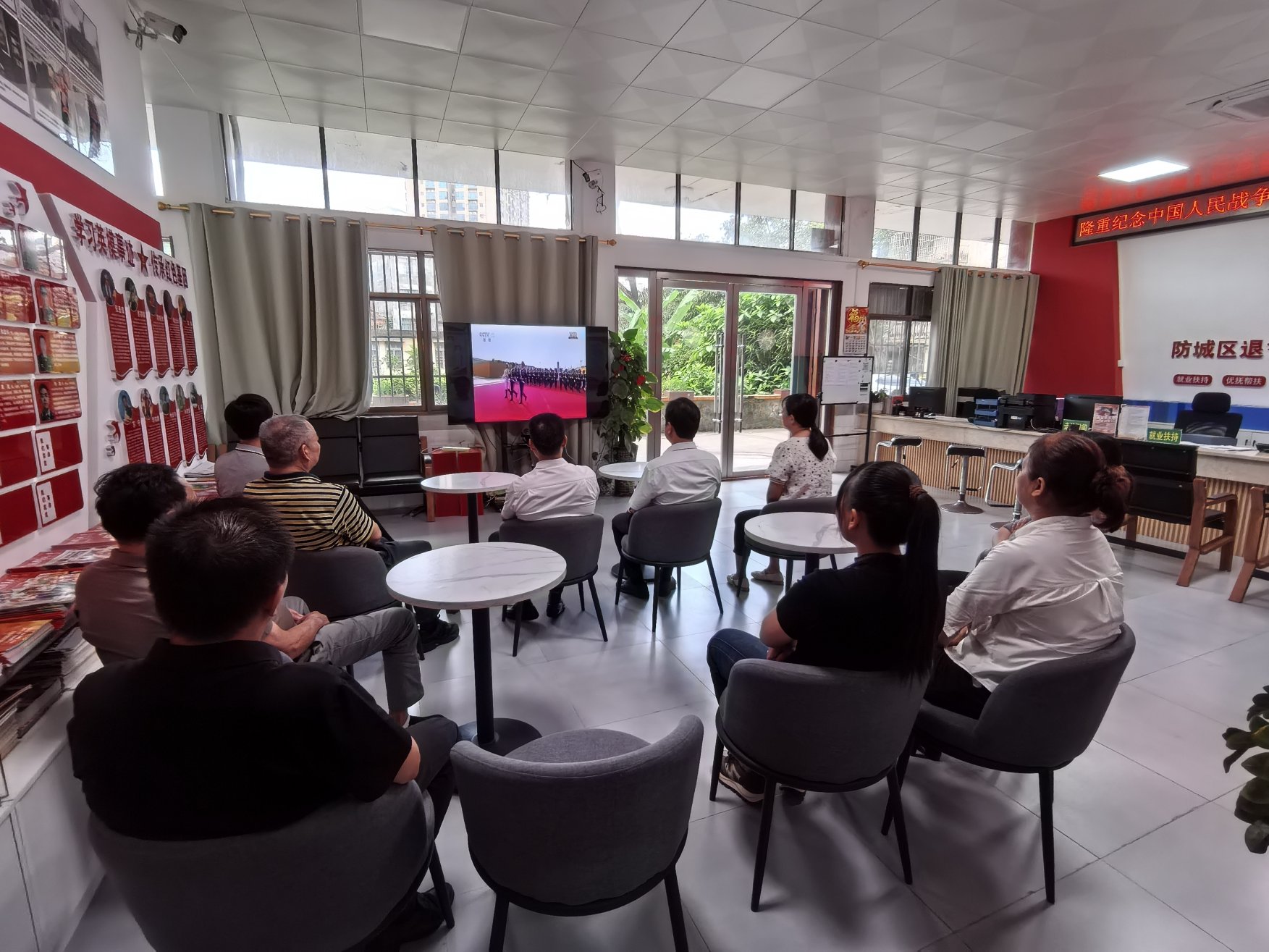 防城港市退役军人事务局集中收看抗日战争胜利80周年纪念活动大会现场。宋谋春摄